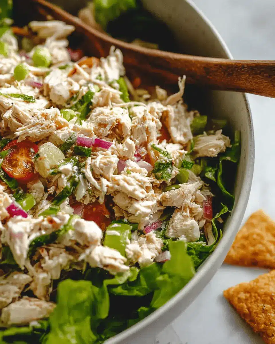 Elevate your 15-Minute Rotisserie Chicken Salad presentation by serving it in lettuce cups or baked avocado halves. This elegant touch not only looks beautiful but keeps things light and fresh. For a fun appetizer, spoon the salad onto small crackers or cucumber slices, perfect for gatherings. Hosting a potluck? Offer it in a large bowl as a DIY sandwich bar, letting guests customize their bites with toppings like Turkey Bacon or Chicken Ham.