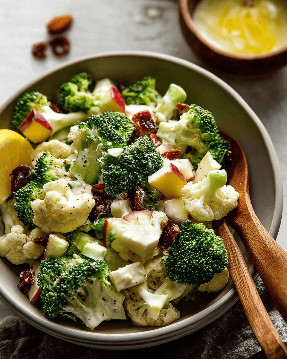 In summary, the Apple Broccoli Cauliflower Salad offers a delightful balance of flavors while being nutritious and visually appealing. It’s an excellent side dish for gatherings or a healthy lunch option. With its vibrant ingredients and zesty lemon dressing, it’s sure to become a favorite. Enjoy!