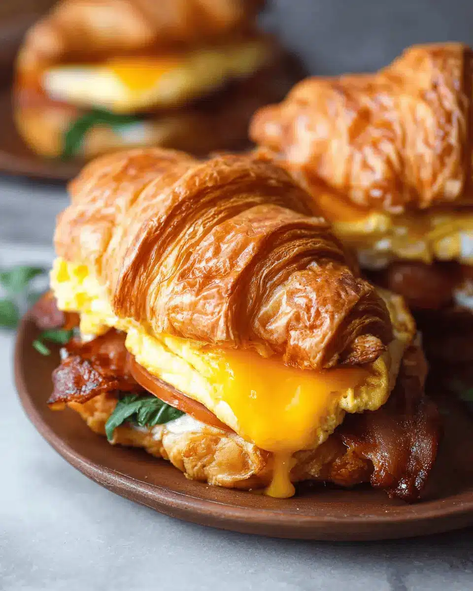 Elevate your Baked Croissant Breakfast Sandwiches experience with these delightful serving ideas. Pair these sandwiches with a fresh, mixed greens salad tossed in a light vinaigrette for a balanced meal. Craving something sweet? Serve alongside fresh fruit, such as berries or sliced oranges, to add a refreshing touch.