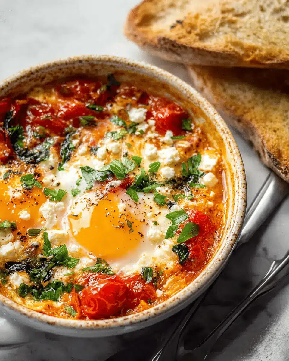 For a heartier vegetarian option, consider adding diced zucchini or mushrooms. Roasting these vegetables alongside the tomatoes will provide additional texture and flavor. You can also swap in your favorite cheese for feta, such as goat cheese, for a creamier, tangy twist that complements the eggs perfectly.
