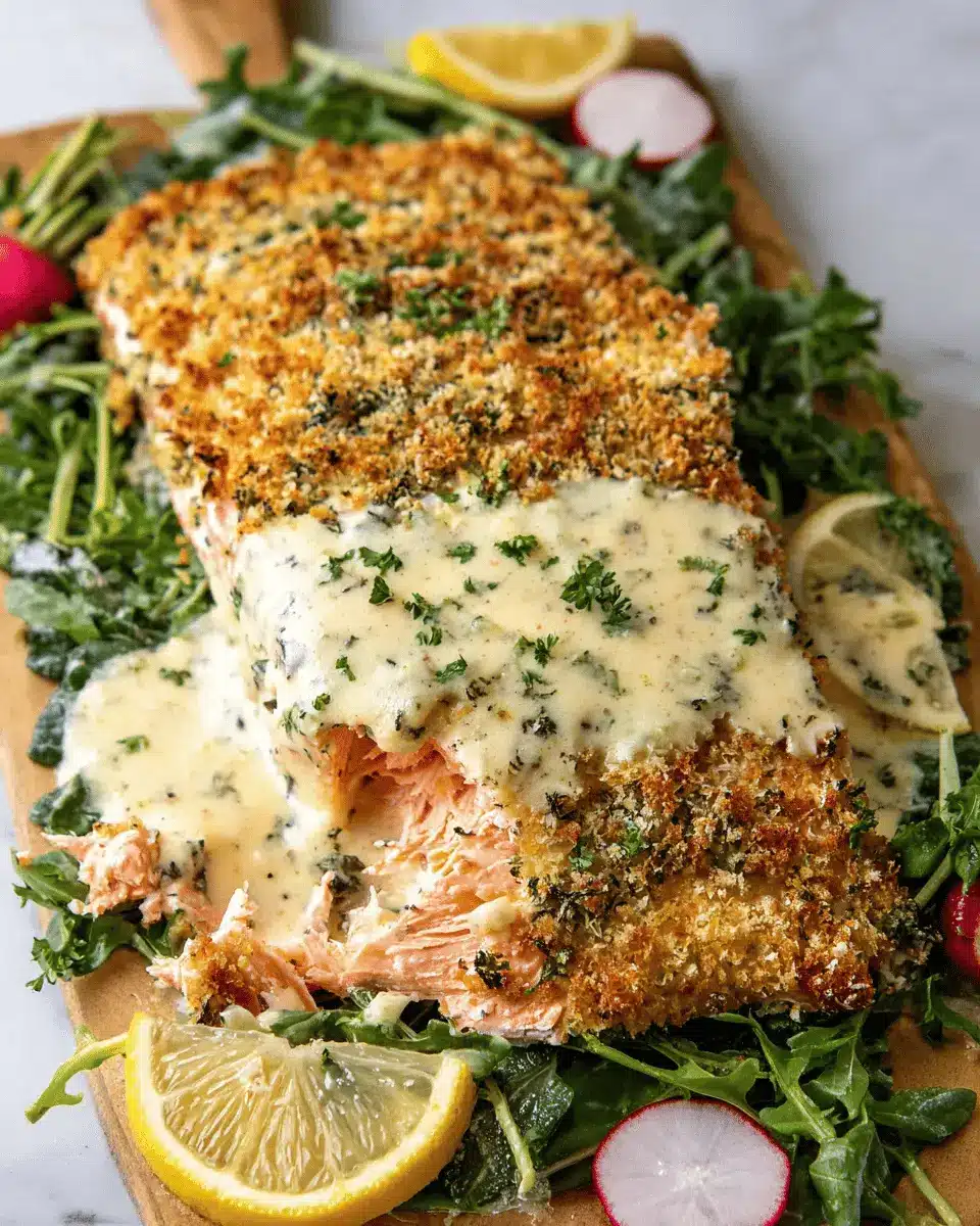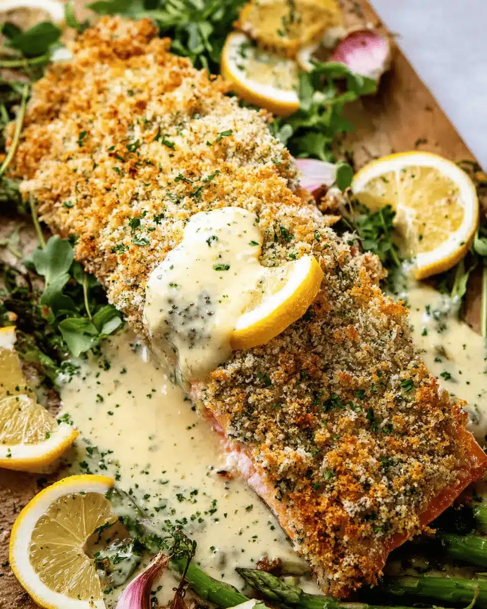 Baked Parmesan Crusted Salmon with Lemon Cream Sauce
