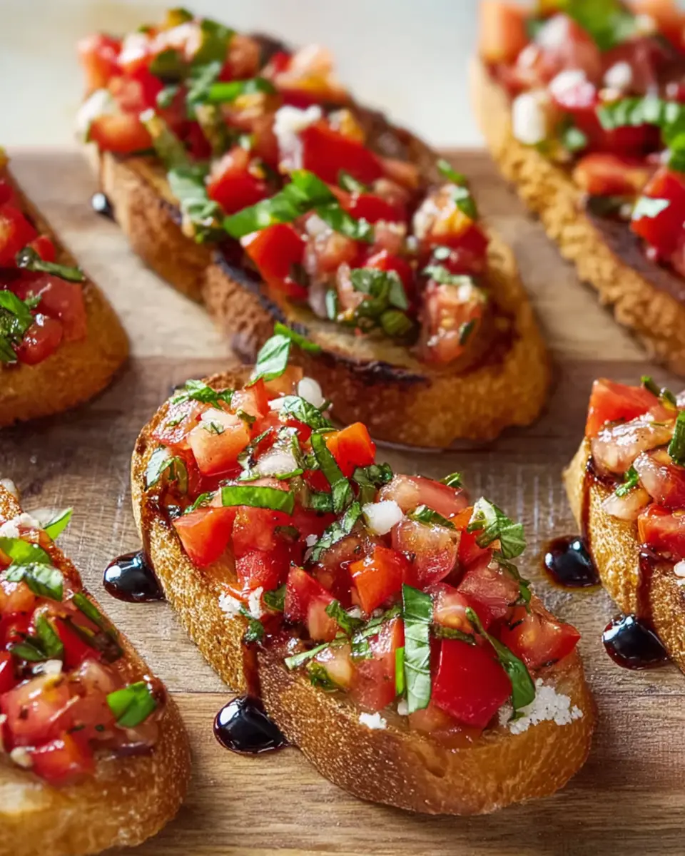 Finally, it’s time to serve! Enjoy your Balsamic Bruschetta immediately while the bread is still warm and crispy. This dish is perfect as an appetizer or even as a light snack. Don’t forget to share the recipe with friends or invite them over for a taste test—who can resist that?