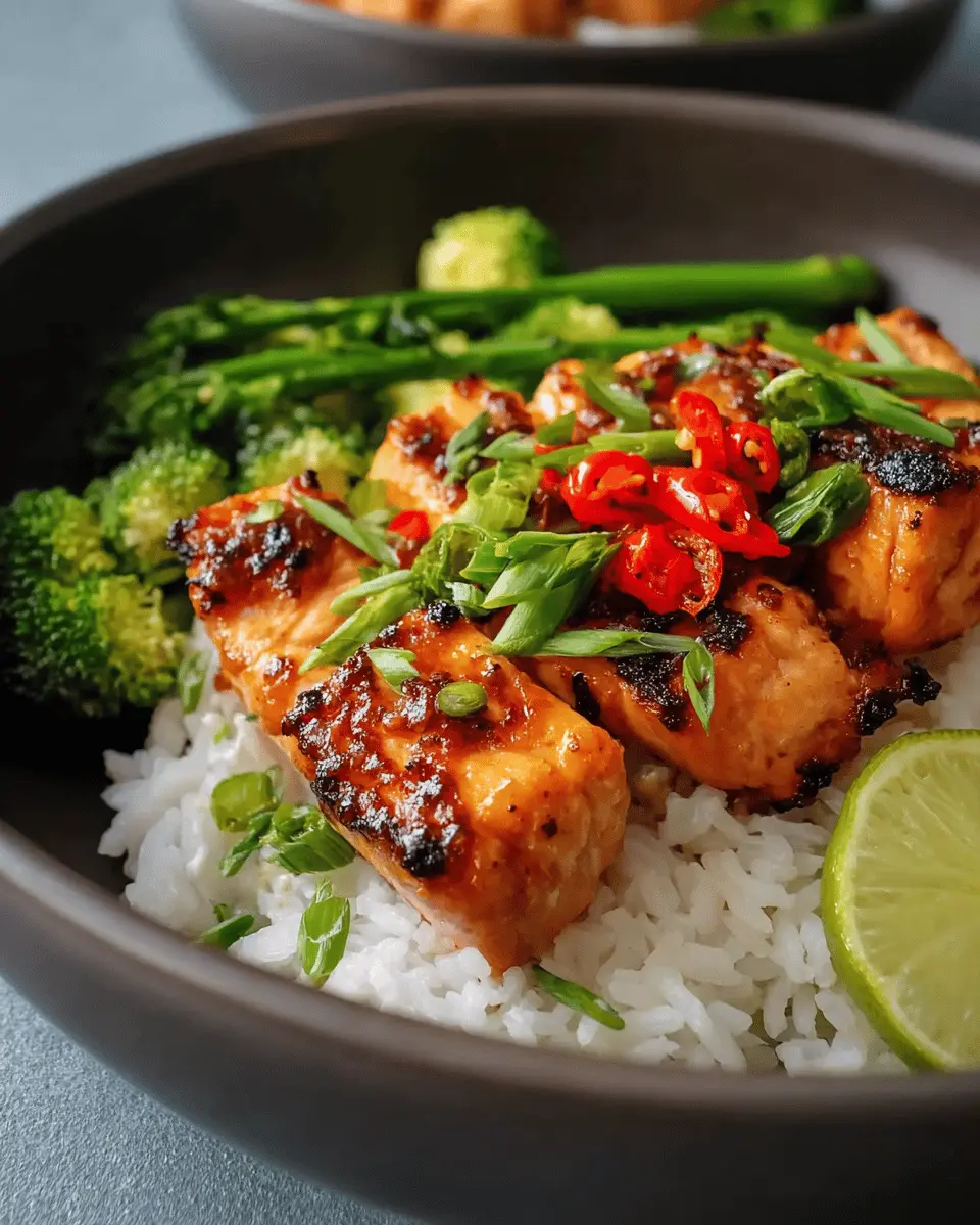 For a final touch, a sprinkle of fresh coriander and sliced spring onions enhances both presentation and flavor. A few lime wedges not only look inviting but can also provide a zesty kick that mingles wonderfully with the salmon's sweetness. Looking to switch things up? A drizzle of sesame oil can add an extra layer of flavor—try it out!