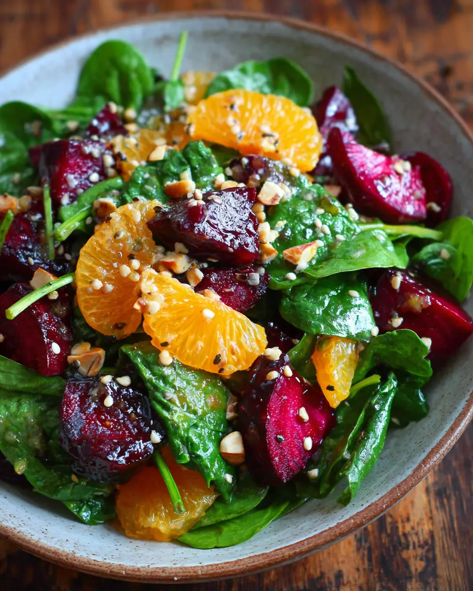 Get ready to dive into this tasty beet salad with spinach! You’ll need about 20 minutes to prep all the ingredients — washing and slicing those vibrant beets, along with the other fresh components.