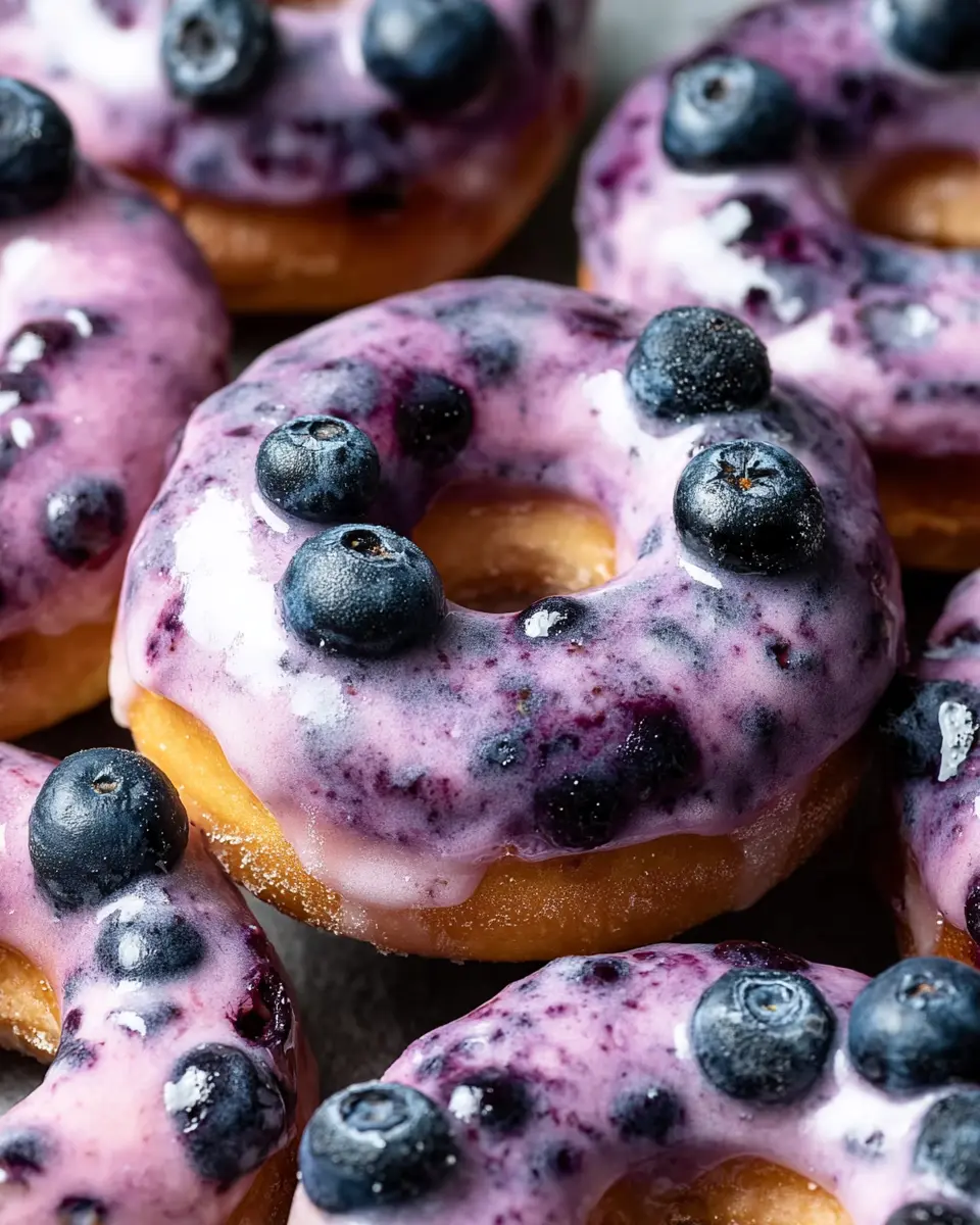 - For the glaze, mash blueberries, strain juice, mix with powdered sugar and vanilla, then drizzle over cooled donuts.