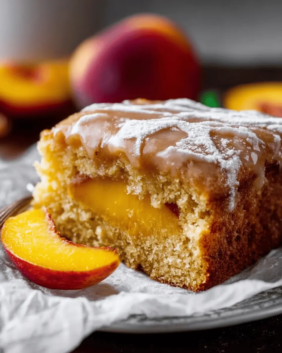 Once your cake has cooled completely, it’s time to frost! Generously spread the brown sugar frosting across the top of the cake. The combination of the cake’s peachiness with the rich, sweet frosting is pure bliss. Cut yourself a slice, serve with a dollop of whipped cream if desired, and enjoy an easy dessert that your friends and family will love. Whether it’s a sunny afternoon or a cozy get-together, this brown sugar peach cake is sure to impress.