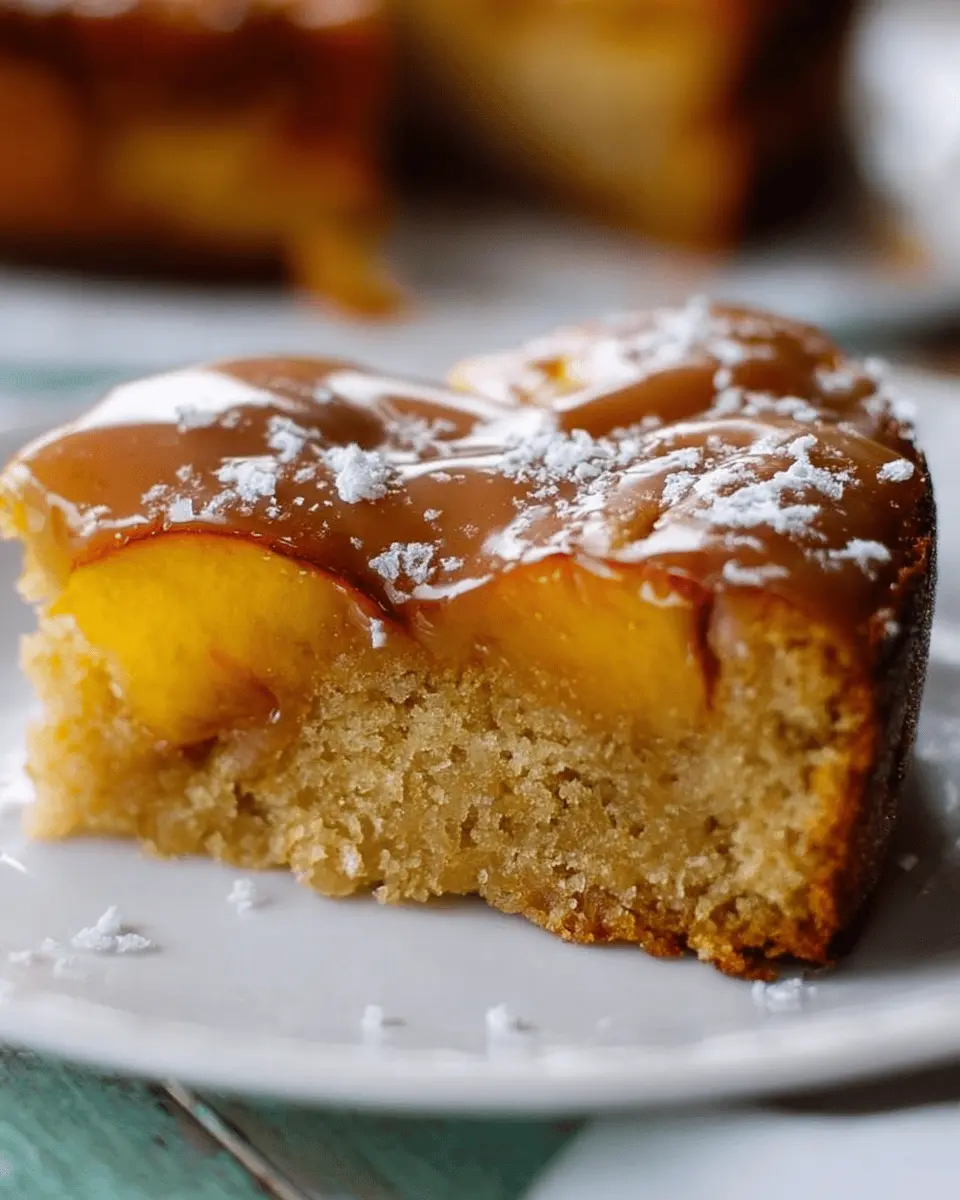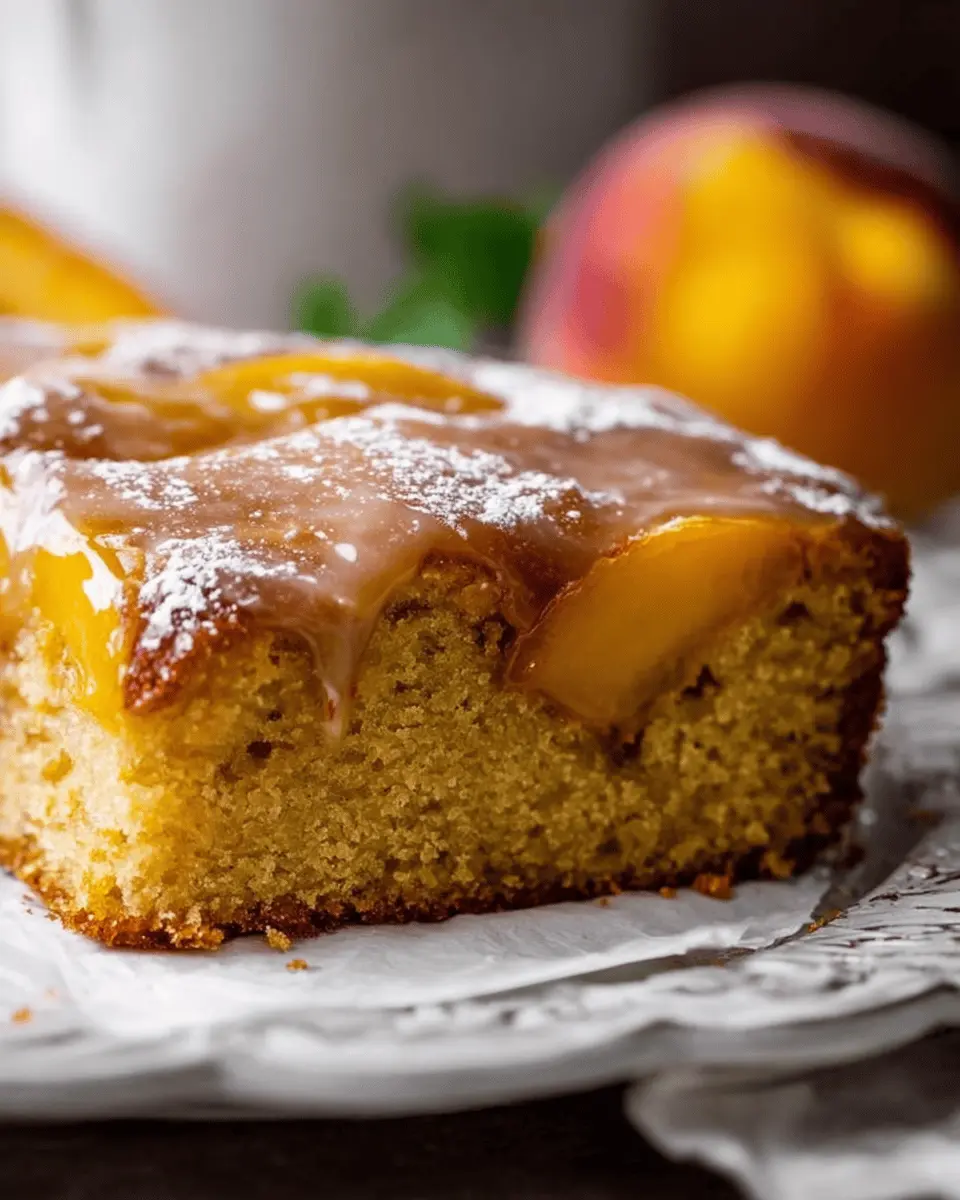 The cake contains around 20 grams of fat, including 9 grams of saturated fat from the butter. This richness complements the fruity notes of peach beautifully, making every slice decadent.