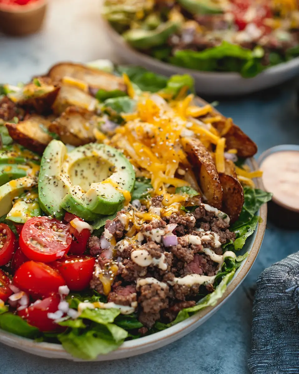 If you have any burger bowl leftovers, simply store them in an airtight container in the refrigerator. They can last for up to 3-4 days. When you're ready to enjoy them again, heat the beef or veggie mix separately and assemble with fresh toppings to retain that crunchy texture.
