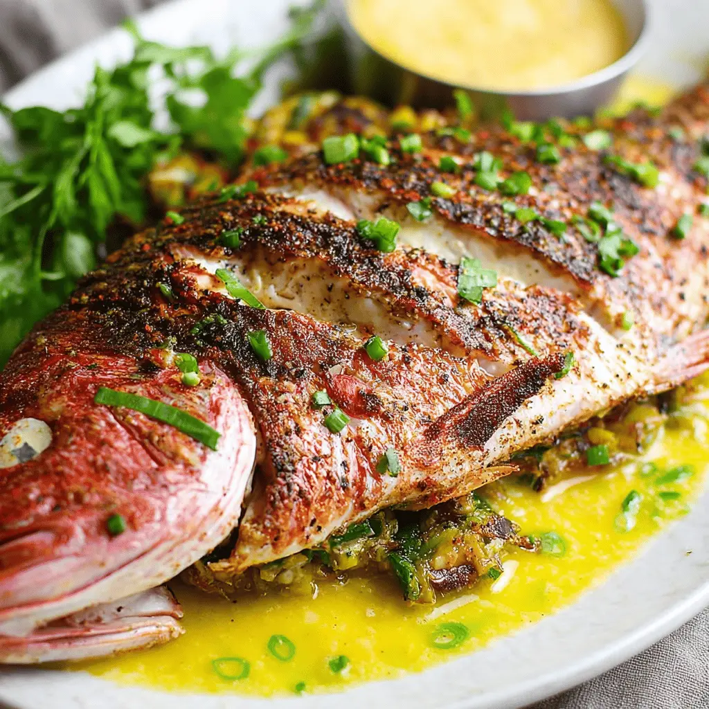 To kick things off, ensure your fresh whole snapper is prepped and ready for grilling. Most fishmongers can clean and scale the fish for you, but if you’re feeling adventurous, you can tackle that yourself! Don’t forget to trim the fins and make a charming V-shaped cut at the tail. Once your snapper is clean, set it in a shallow baking pan to prepare for marinating.