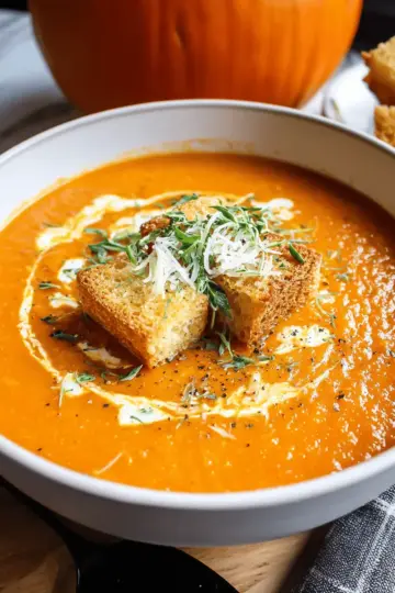 Pumpkin Tomato Soup: Easy Recipe with Savory Turkey Bacon Croutons