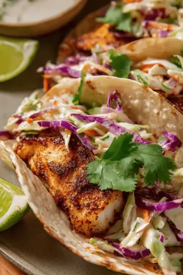 Air Fryer Fish Tacos with Cilantro Lime Slaw