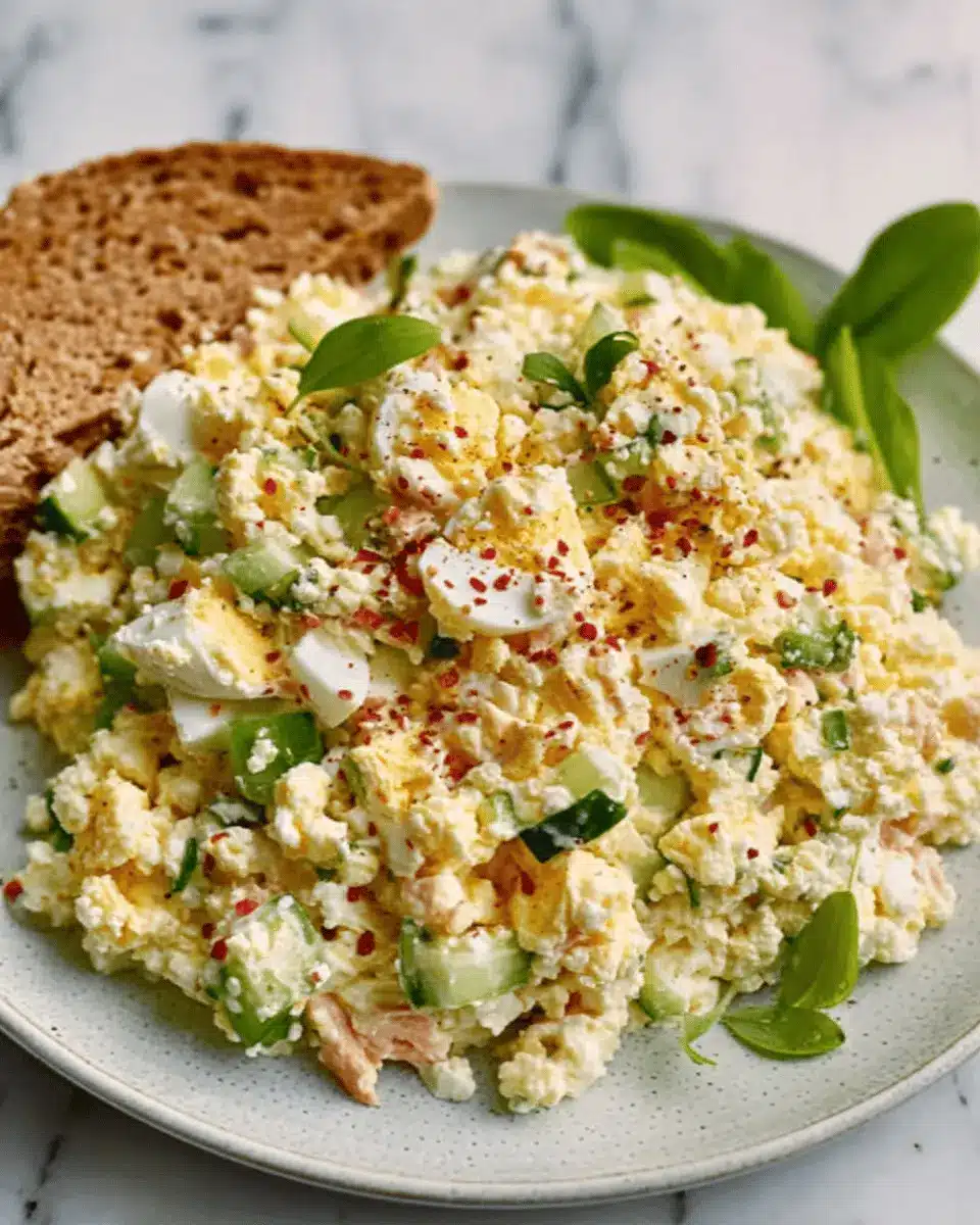 For a savory crunch, try adding crispy turkey bacon to your cheese egg salad. The smoky flavor complements the richness of the eggs and mellow cottage cheese beautifully. Simply cook the turkey bacon until crispy, crumble it, and fold it into the salad before serving. This variation not only boosts the flavor but also adds some satisfying texture.