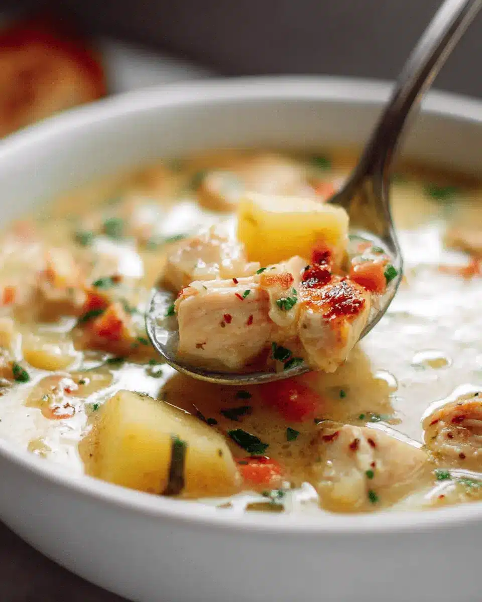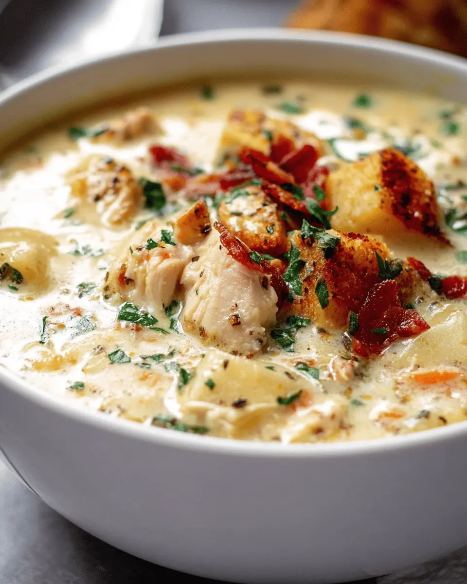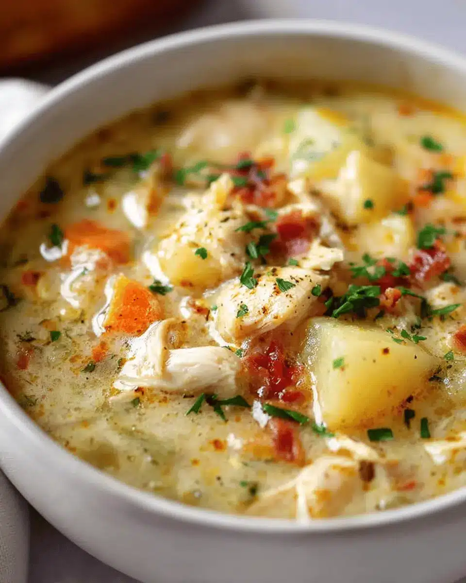 Chicken Potato Soup: Creamy Comfort with Turkey Bacon Delight