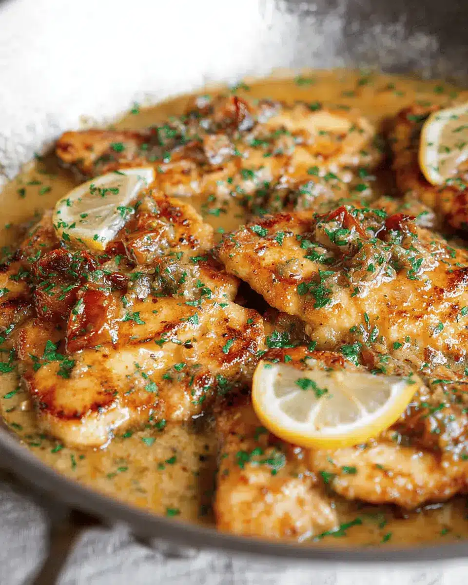 Enhance your Chicken Scallopini visually and flavor-wise by garnishing thoughtfully: