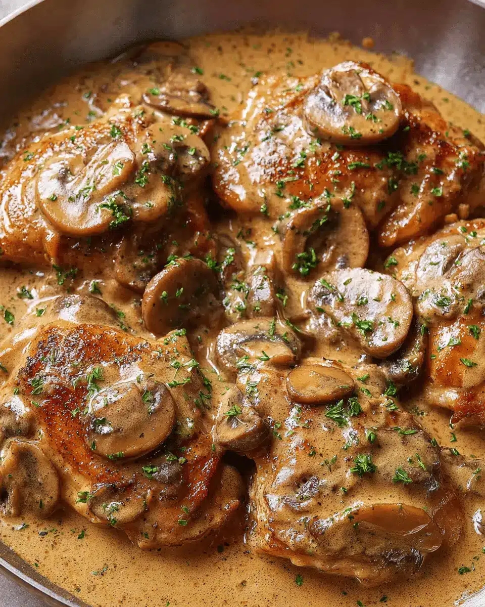 Chicken Thighs With Creamy Mushroom Garlic Sauce