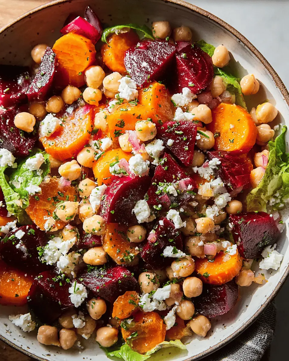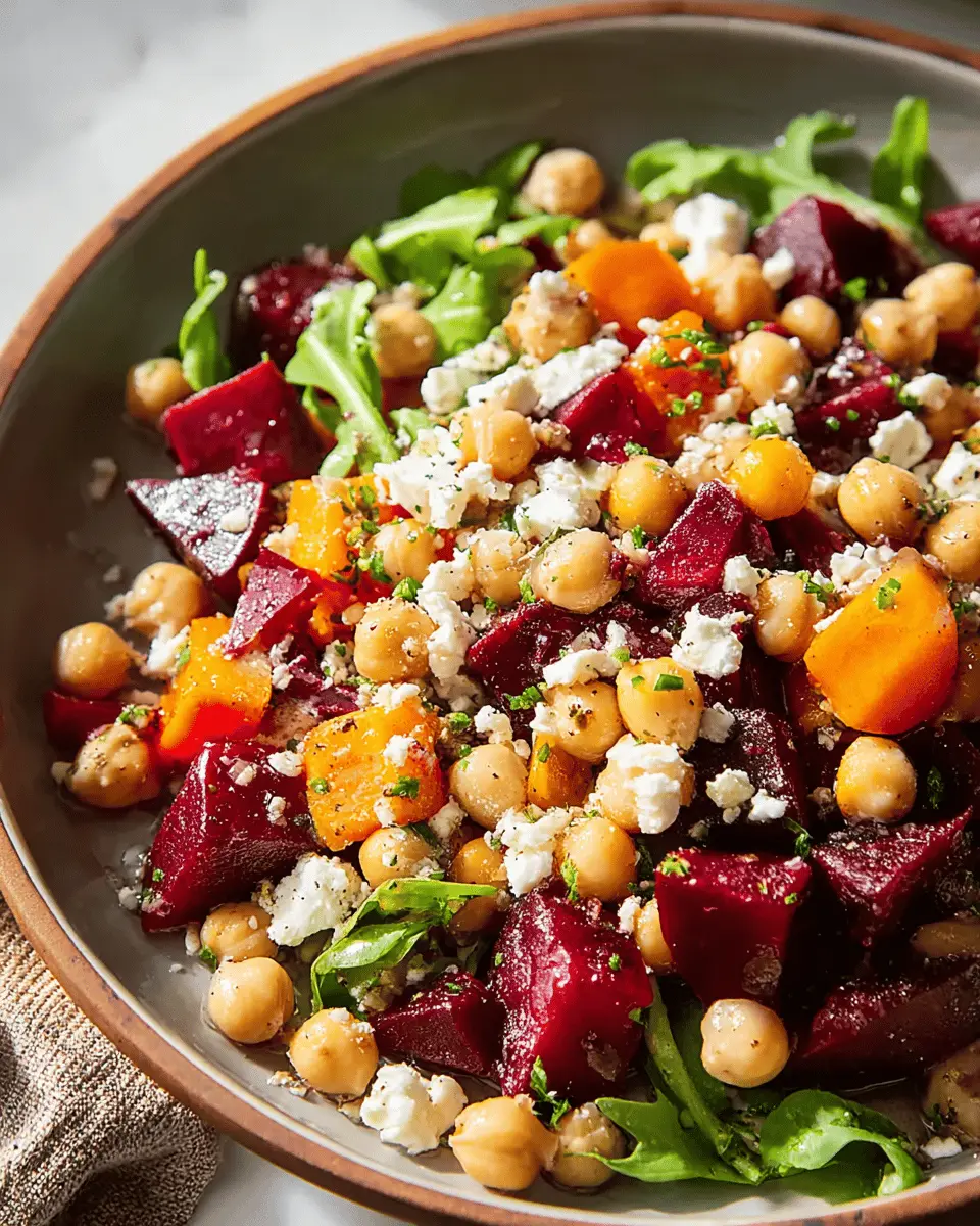In our fast-paced lives, it’s essential to find meals that are both quick to prepare and satisfying. That’s where this salad shines! It's loaded with elements like protein-rich chickpeas, fiber-packed beets, and delightfully tangy feta cheese, offering you a well-rounded meal in just one bowl. Not to mention, preparation takes a mere 15 minutes—ideal for those who might be juggling work, social activities, and self-care.