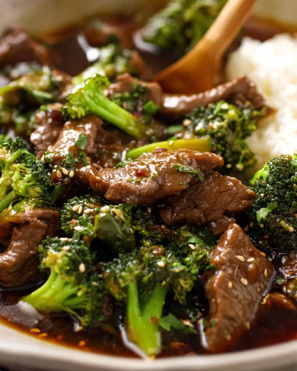 Finally, it’s time to serve your homemade Chinese Beef and Broccoli! Remove the skillet from heat and dish out the stir-fry over a bed of steamed rice. If you’re feeling fancy, sprinkle some sesame seeds on top for that added crunch. Dig in and savor the well-balanced flavors and vibrant colors of your meal!