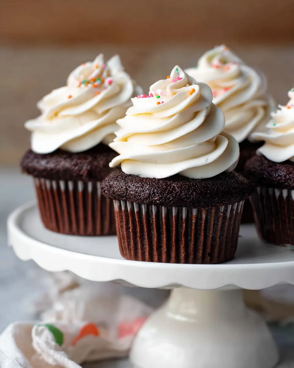 To ensure your Chocolate Cupcakes With Vanilla Frosting stay fresh, store them in an airtight container at room temperature for up to 1 day. Alternatively, place them in the refrigerator, where they can last up to 3 days. Just remember to allow them to come to room temperature before serving to enjoy their full flavor!