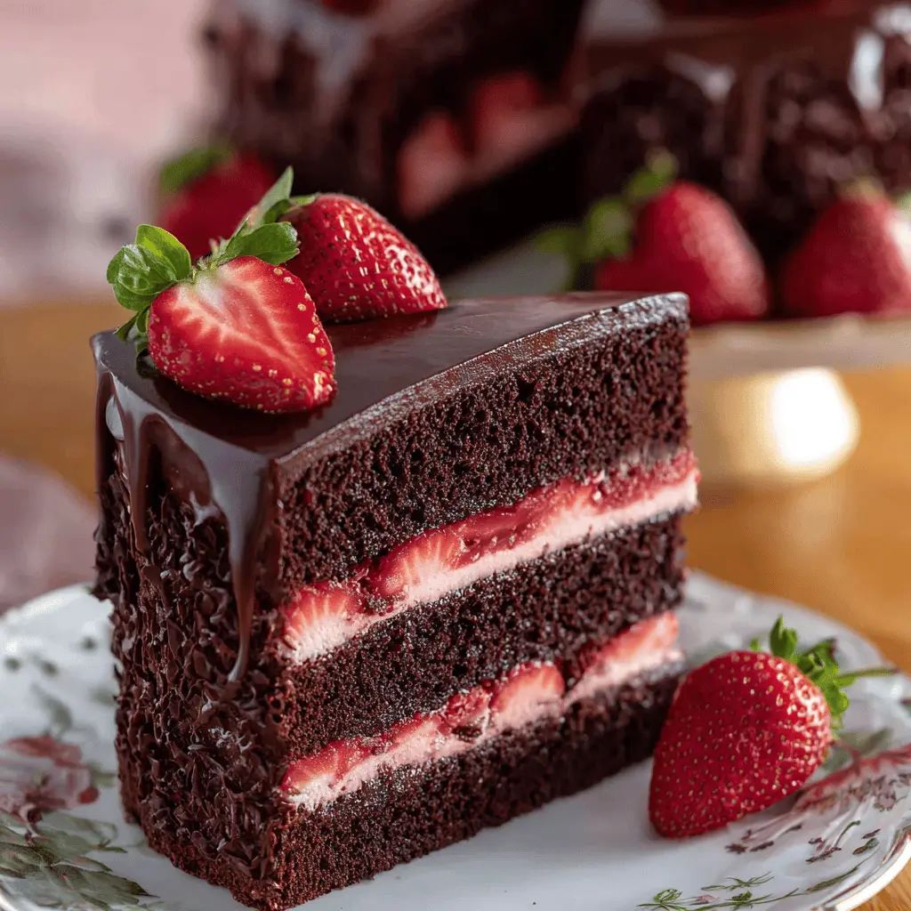 Chill the cake for at least 30 minutes before slicing. This Chocolate Strawberry Cake is perfect for any occasion—think birthdays, anniversaries, or even just a splendid weekend treat. Enjoy every delectable bite!