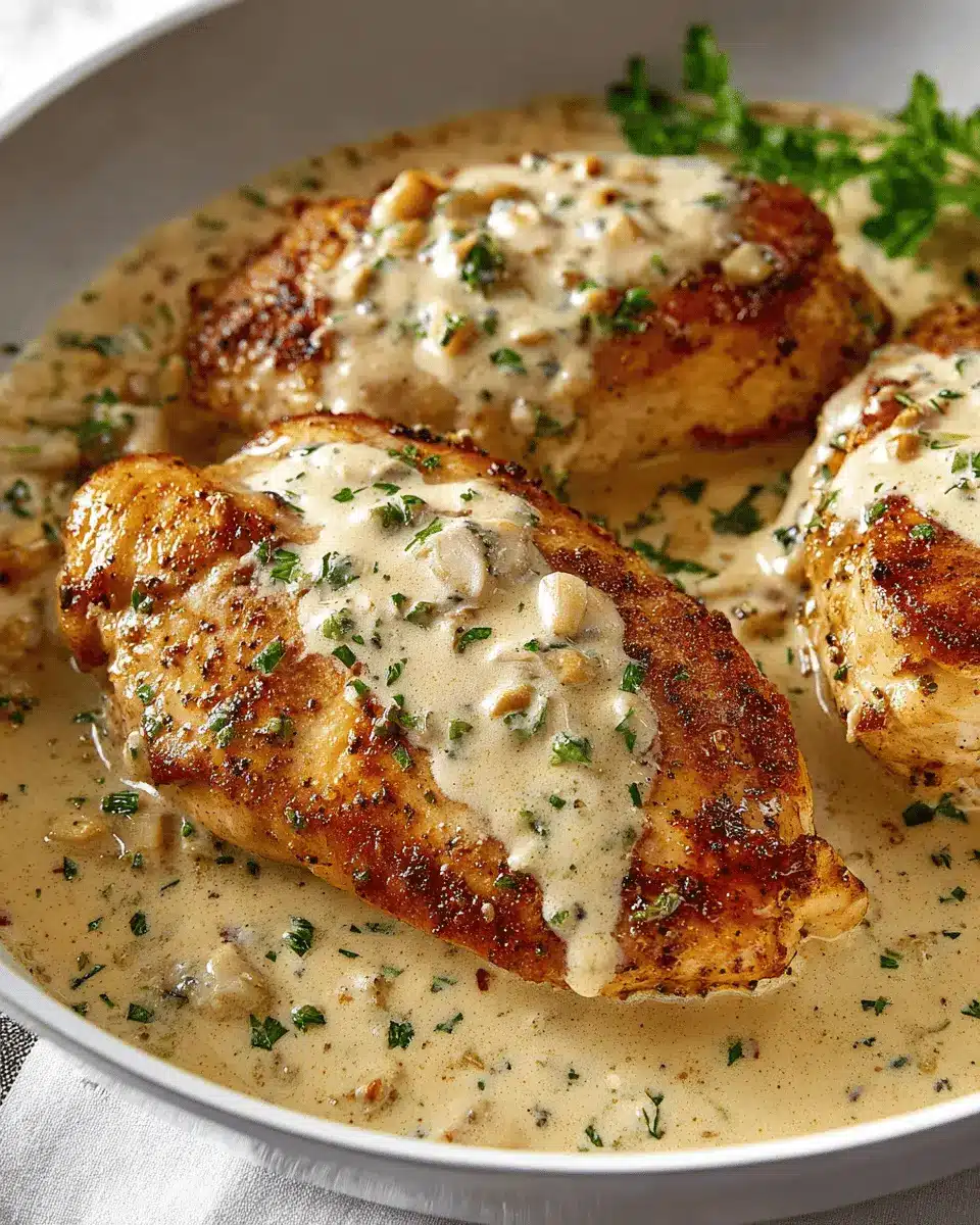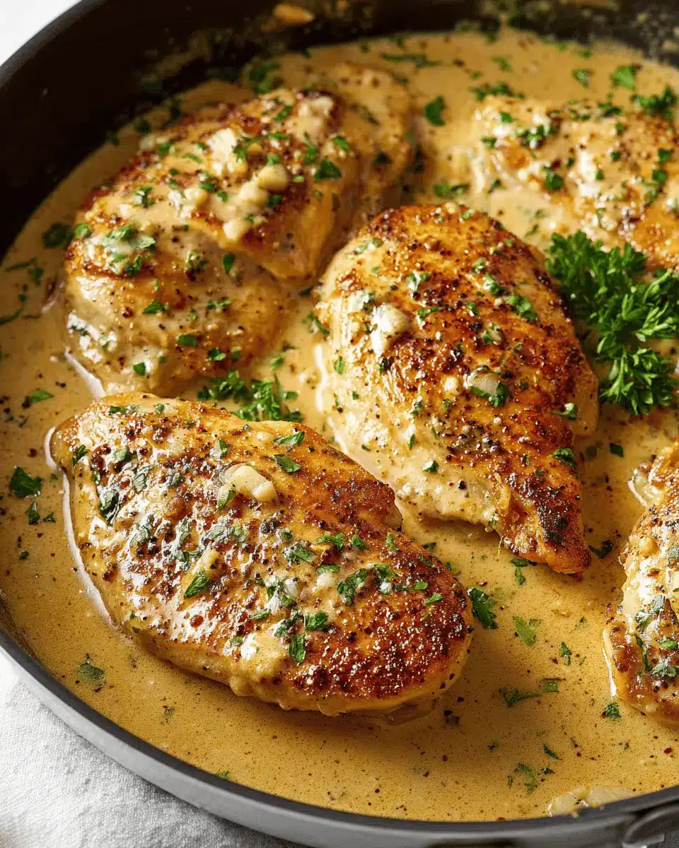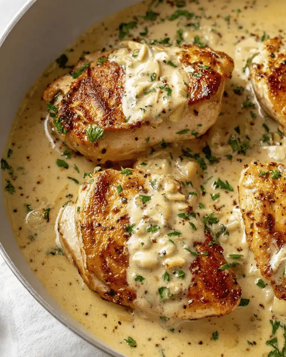 In summary, this creamy garlic chicken recipe is a delightful way to transform simple ingredients into a gourmet meal. Its rich flavors and comforting texture are perfect for any occasion. Serve it with pasta or veggies for a complete dish that’s sure to impress friends or family. Enjoy every bite!