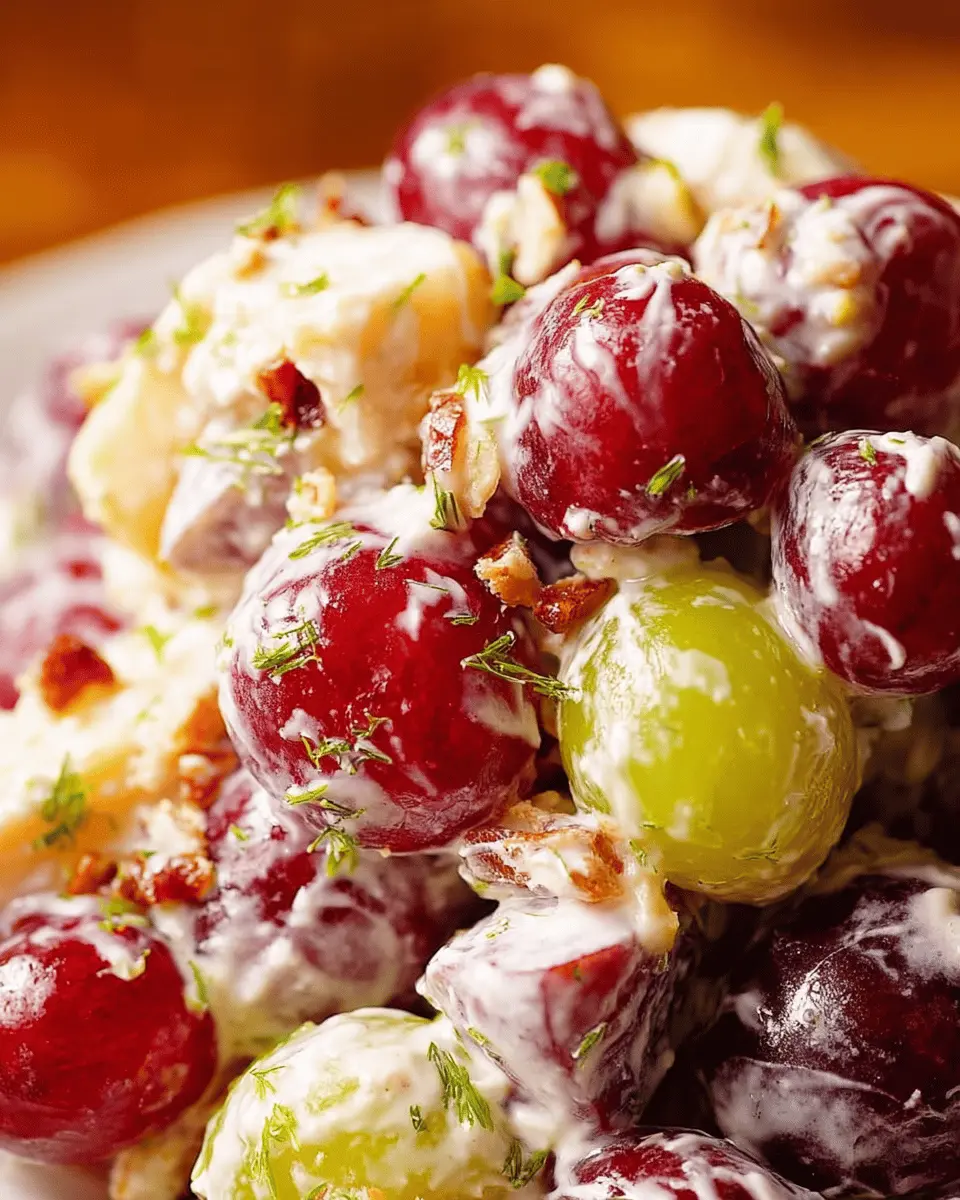 When selecting grapes, look for plump, firm ones; they’ll provide that satisfying crunch. Diced sweet apples add a special touch, while the cranberries offer a pop of color and tartness. You can always add a handful of walnuts or swap in some dried cherries for variety, too.
