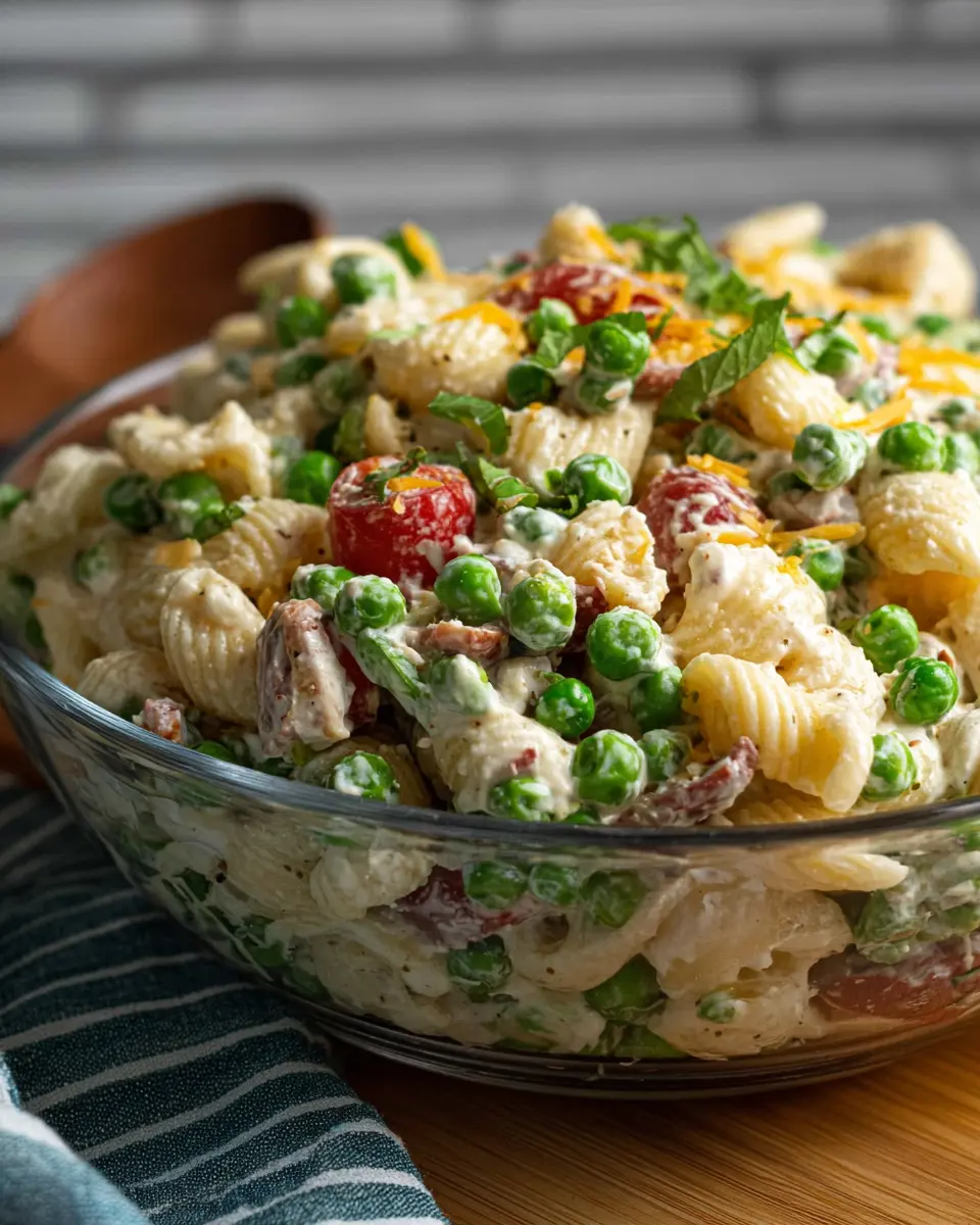 Feel free to get creative! You can toss in some diced chicken ham, cherry tomatoes, or even avocado for extra creaminess. Want a fresh herb touch? Add chopped basil or parsley! Mixing in some diced bell peppers can provide a delightful crunch. Personalizing your creamy pea pasta salad is what makes it truly yours.