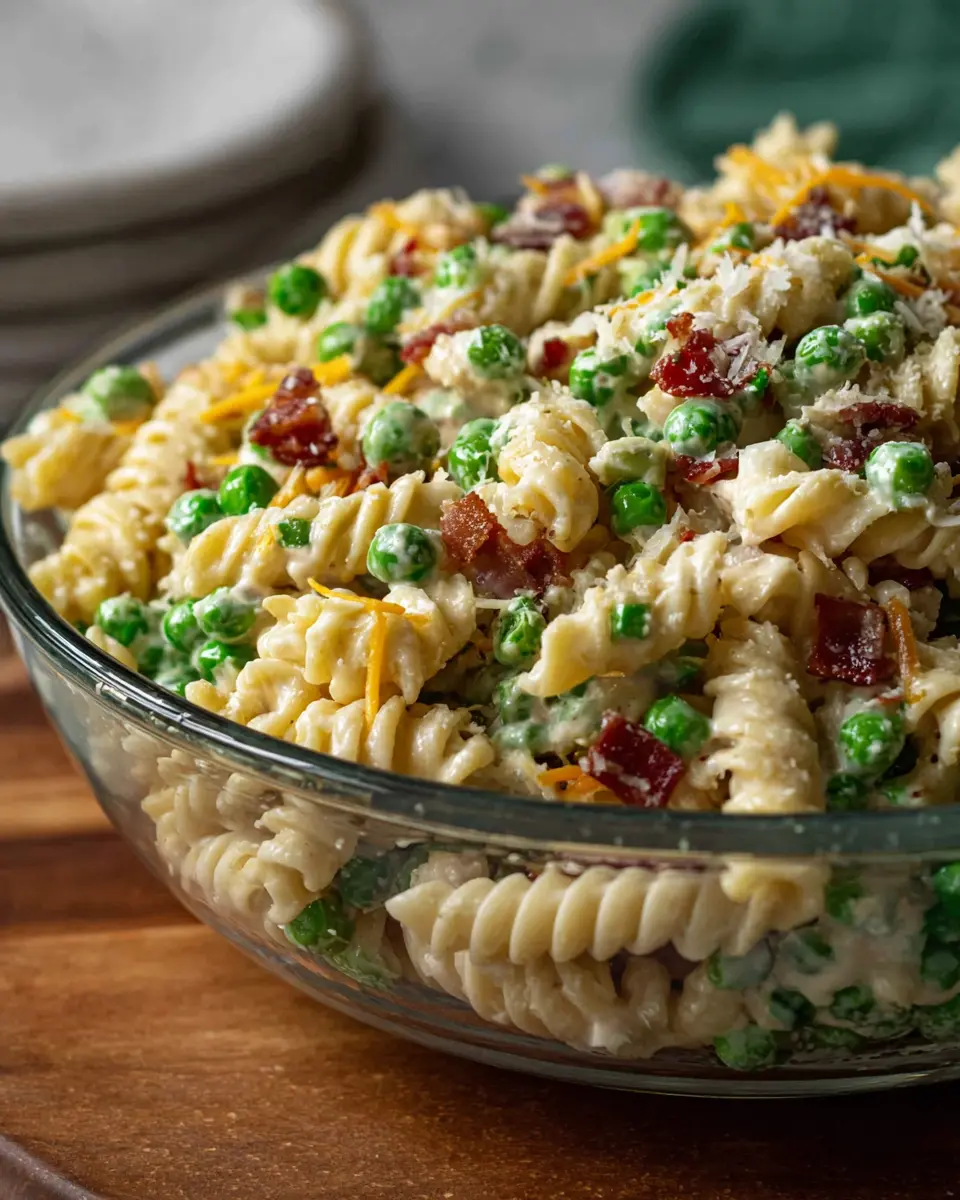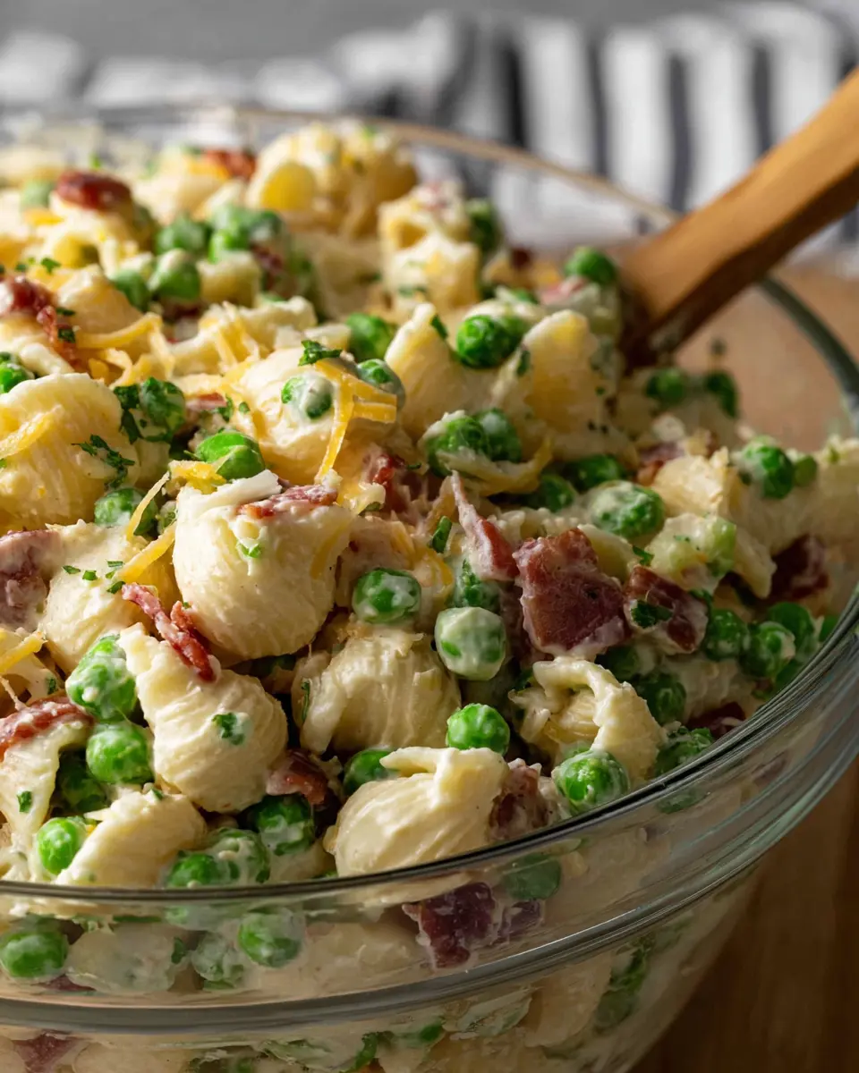You're almost there! When you're ready to dig in, give the salad a good stir, and then serve it in individual bowls. This creamy pea pasta salad is perfect for summer barbecues, potlucks, or a simple weeknight dinner. Pair it with grilled chicken for added protein or enjoy it on its own as a refreshing meal. Whatever the occasion, your guests or family will be grateful—after all, who wouldn’t love a dish that’s creamy, crunchy, and packed with flavor? Enjoy every bite!