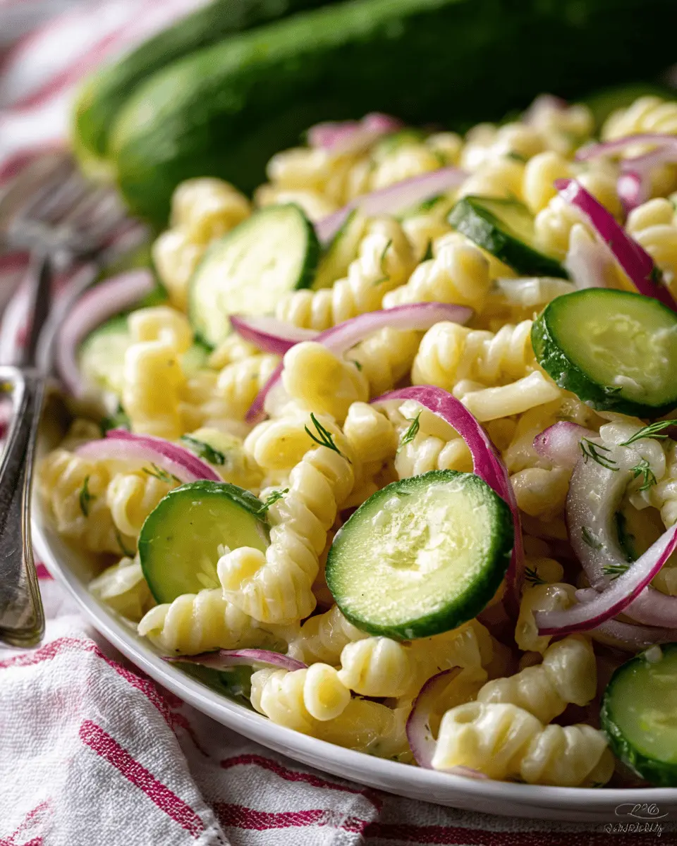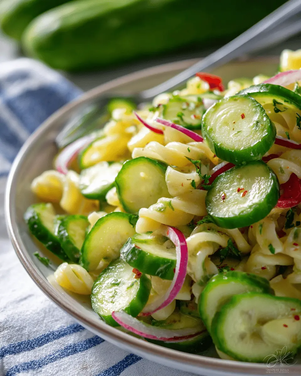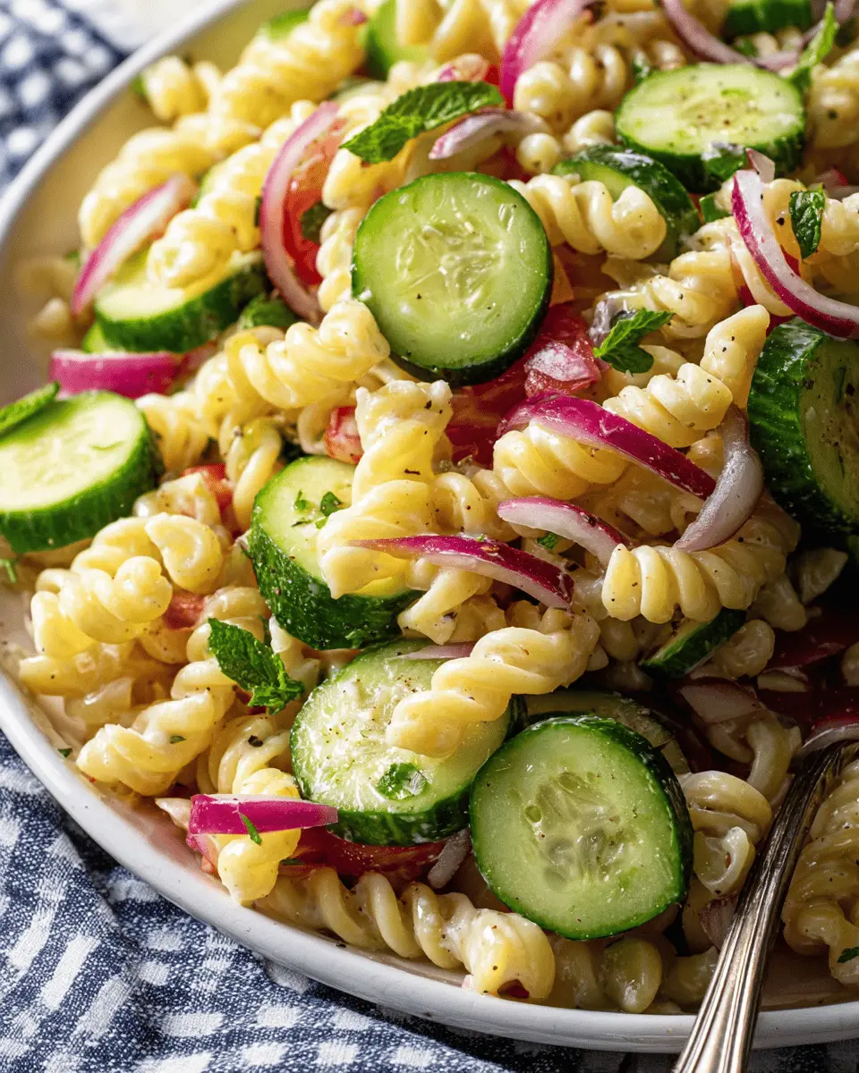 In conclusion, cucumber pasta salad is a delightful dish that perfectly balances flavors and textures. Its refreshing crunch from cucumbers and the sweetness of the dressing make it an ideal summer side. Easy to prepare and perfect for gatherings, this salad will surely become a favorite in your recipe rotation!