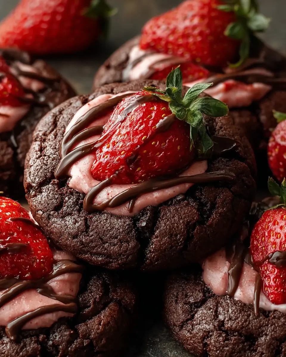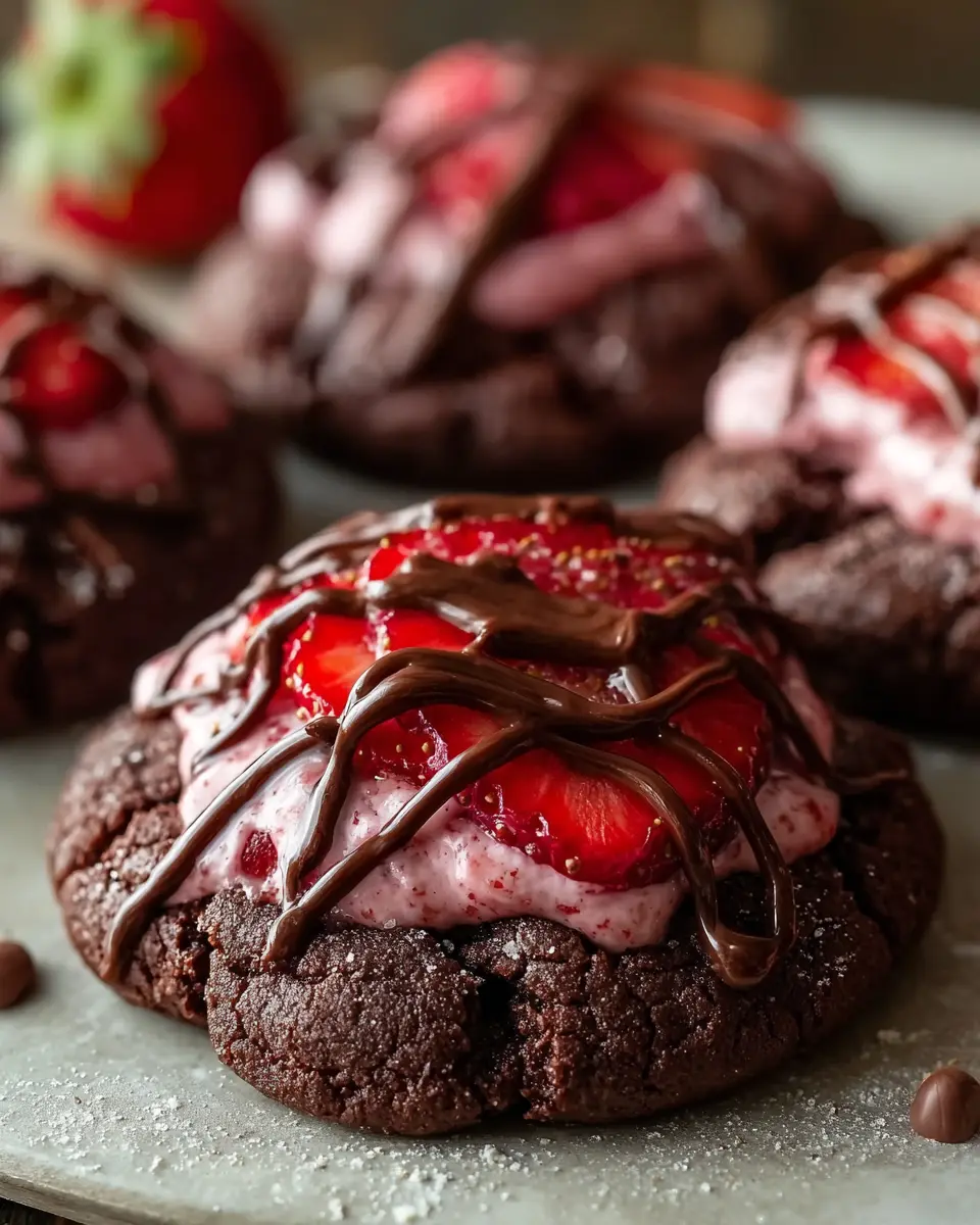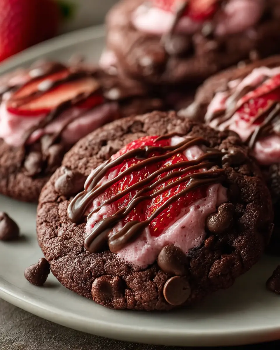 Decadent Crumbl Chocolate Strawberry Cookies
