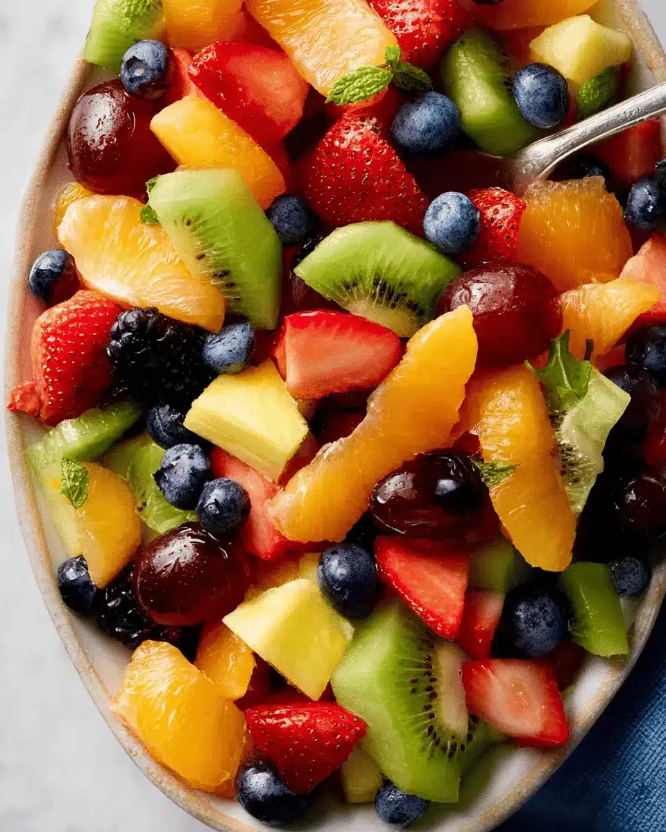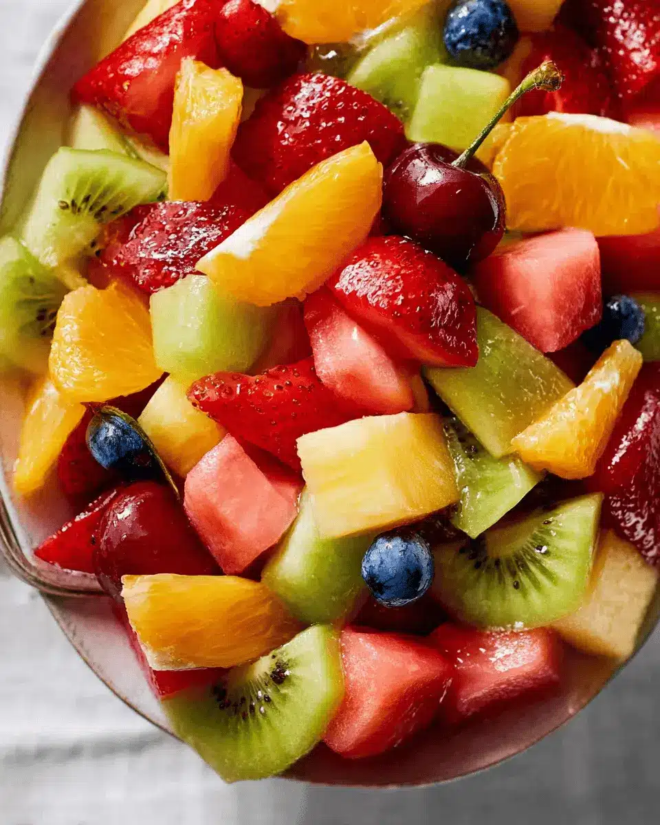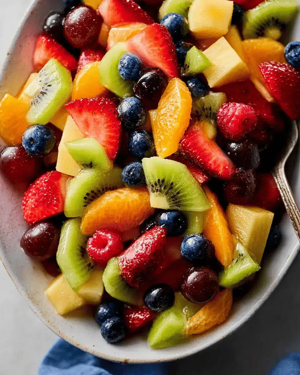 For a berrylicious variation, mix in an assortment of your favorite berries—like raspberries and blackberries—along with the original fruits. Serve your easy fruit salad with a drizzle of yogurt for a creamy, tangy complement. Greek yogurt adds protein, while the sweetness of the fruit balances it out. This version not only adds a pop of color but also makes for a nutritious breakfast or a delightful dessert. Your guests will love this fresh take, and it’s a fun way to boost your daily fruit intake!