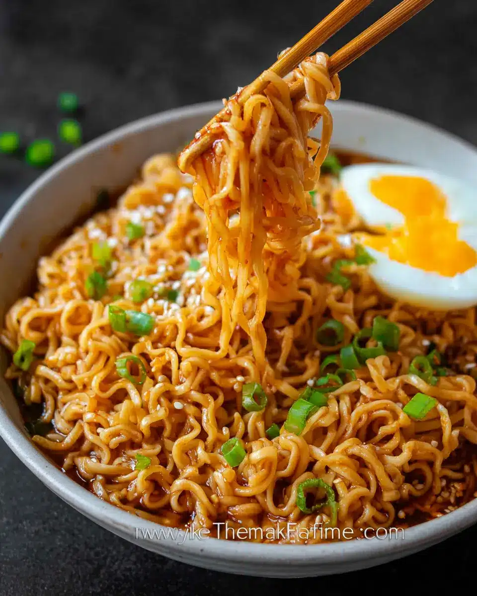 Craving something with a kick? Transform your easy saucy ramen noodles into a spicy delight by adding chili garlic sauce. Start by mixing 1-2 tablespoons of the sauce into your prepared noodles for a fiery twist. For an extra burst of flavor, consider garnishing with fresh sliced chili or a sprinkle of crushed red pepper flakes. This simple addition not only elevates the taste but also makes your ramen a memorable dish.