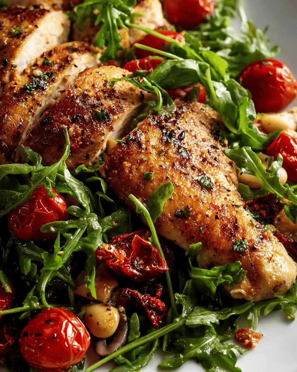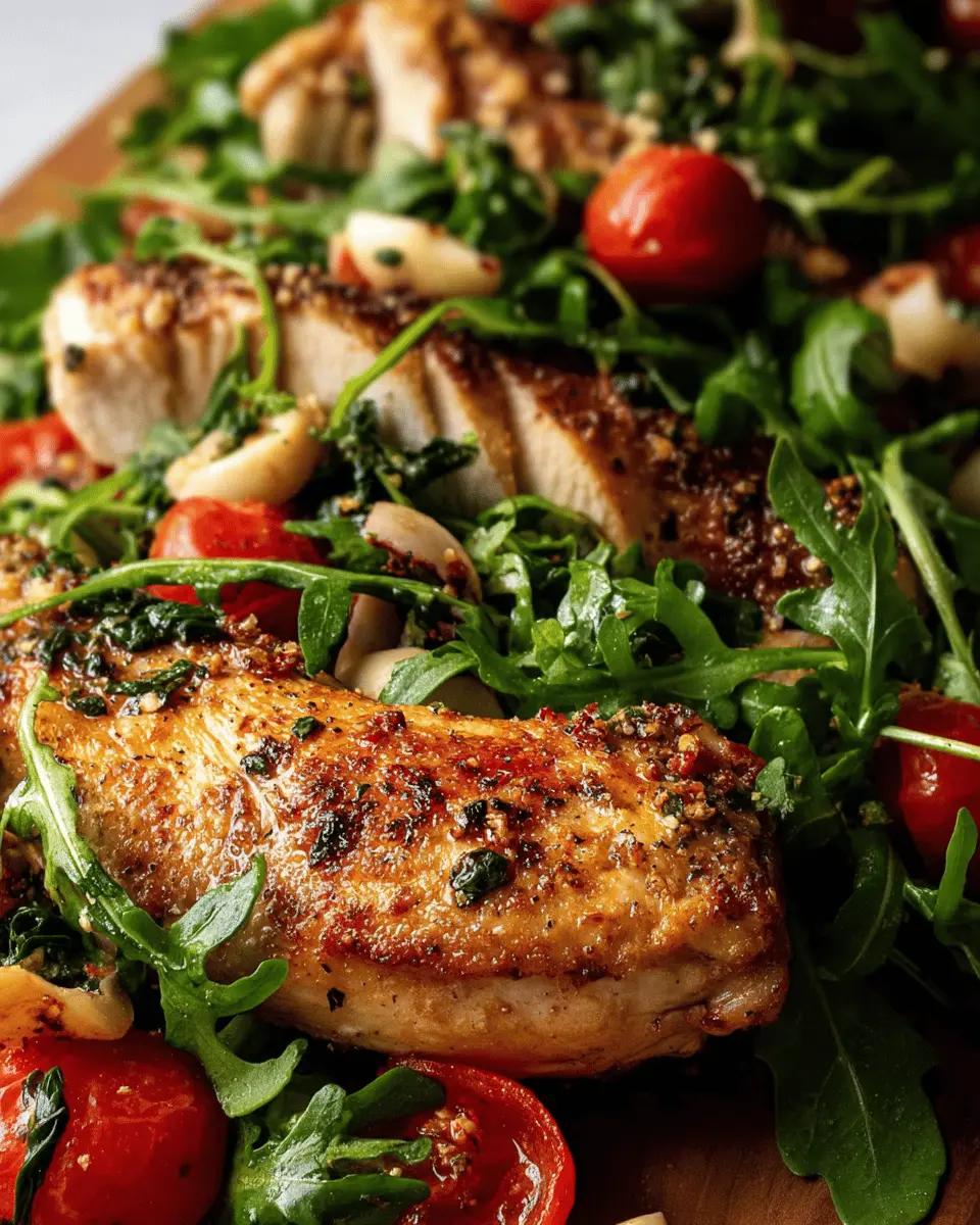 Grilled Chicken with Arugula: A Juicy Twist with Kalamatas and Tomatoes