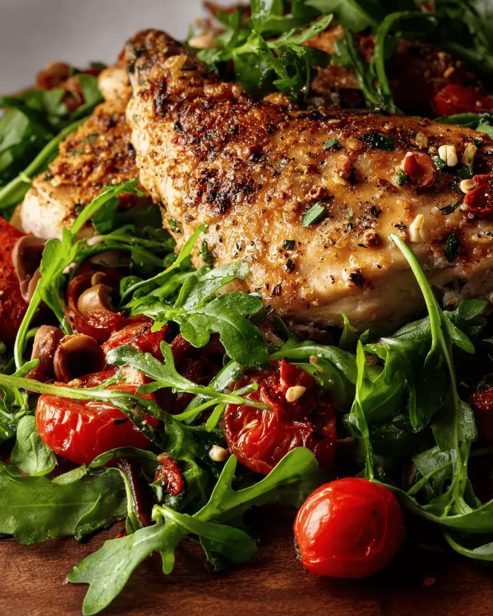 Grilled Chicken with Arugula is not just a meal; it’s a simple solution for busy professionals looking to eat healthily without sacrificing flavor. With minimal prep and cook time, it’s perfect for post-work relaxation. Enjoy the freshness of arugula and juicy tomatoes; your taste buds will thank you!