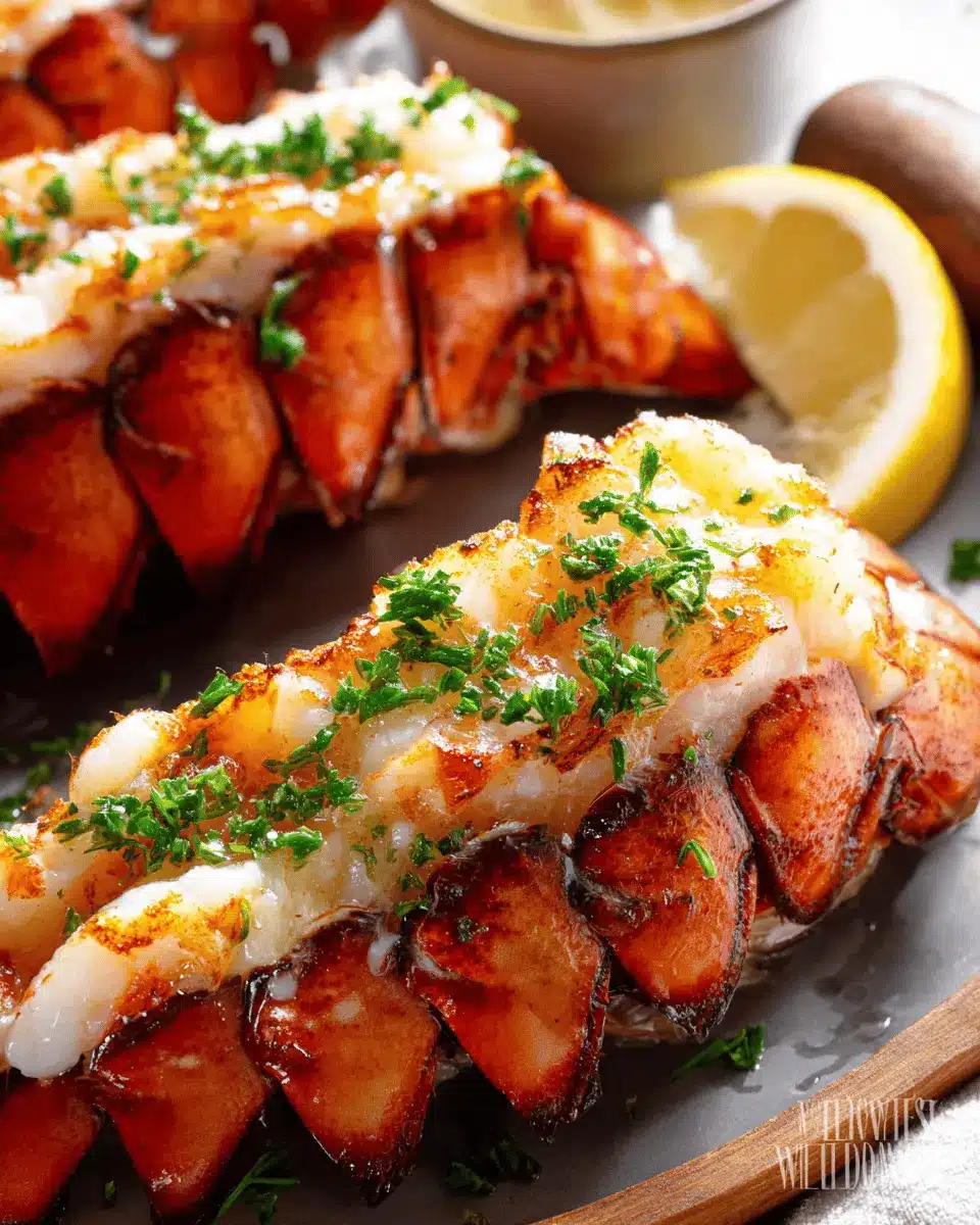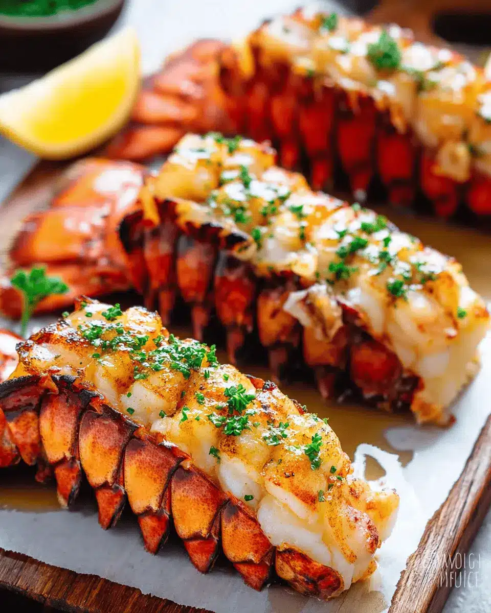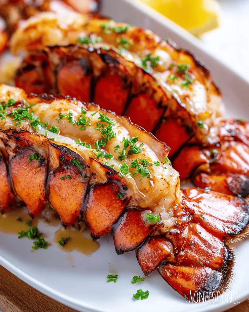 Complement your grilled lobster tail with sides like garlic butter asparagus, roasted potatoes, or a fresh green salad. A delicious garlic bread or creamy risotto also pairs beautifully, creating a balanced and delightful meal experience for your guests. Add some lemon wedges for a fresh squeeze right over the lobster, elevating the dish even further!