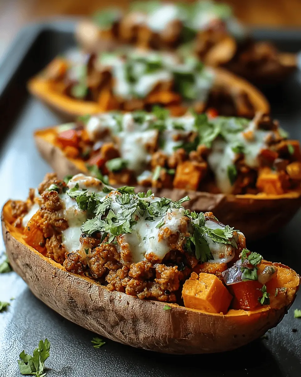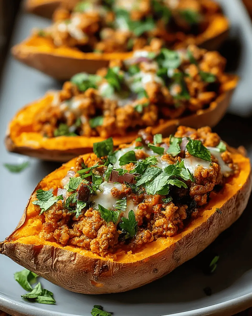 Elevate your Ground Turkey Stuffed Sweet Potatoes with these delightful serving suggestions. Start with a light side salad drizzled with a tangy vinaigrette to balance the sweetness of the potatoes. Consider adding freshly sliced avocado or a sprinkle of chili flakes for an extra layer of flavor.