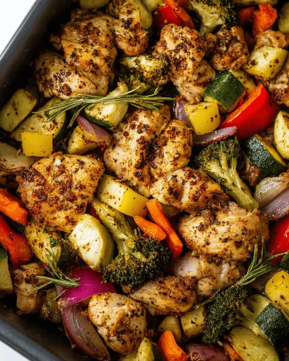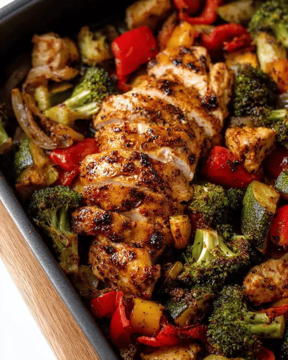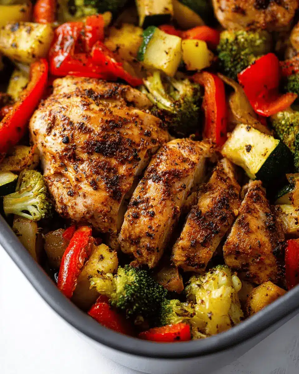 For a kick of heat, incorporate chili flakes or paprika into the spice mix. You can also add sliced jalapeños or sriracha for extra spice. Pairing spicy chicken with roasted bell peppers and zucchini enhances both the flavors and the nutrition.