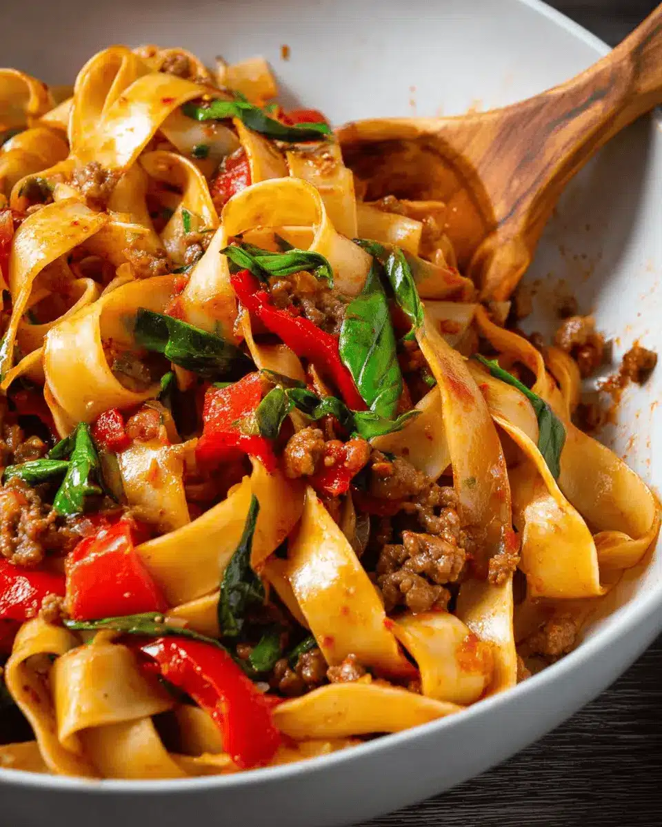 The beauty of Italian Drunken Noodles lies in their versatility. They are perfect for a laid-back weeknight dinner yet fancy enough to impress guests. The chewy pappardelle noodles soak up the savory sauce, making every bite a wonderful explosion of flavors.