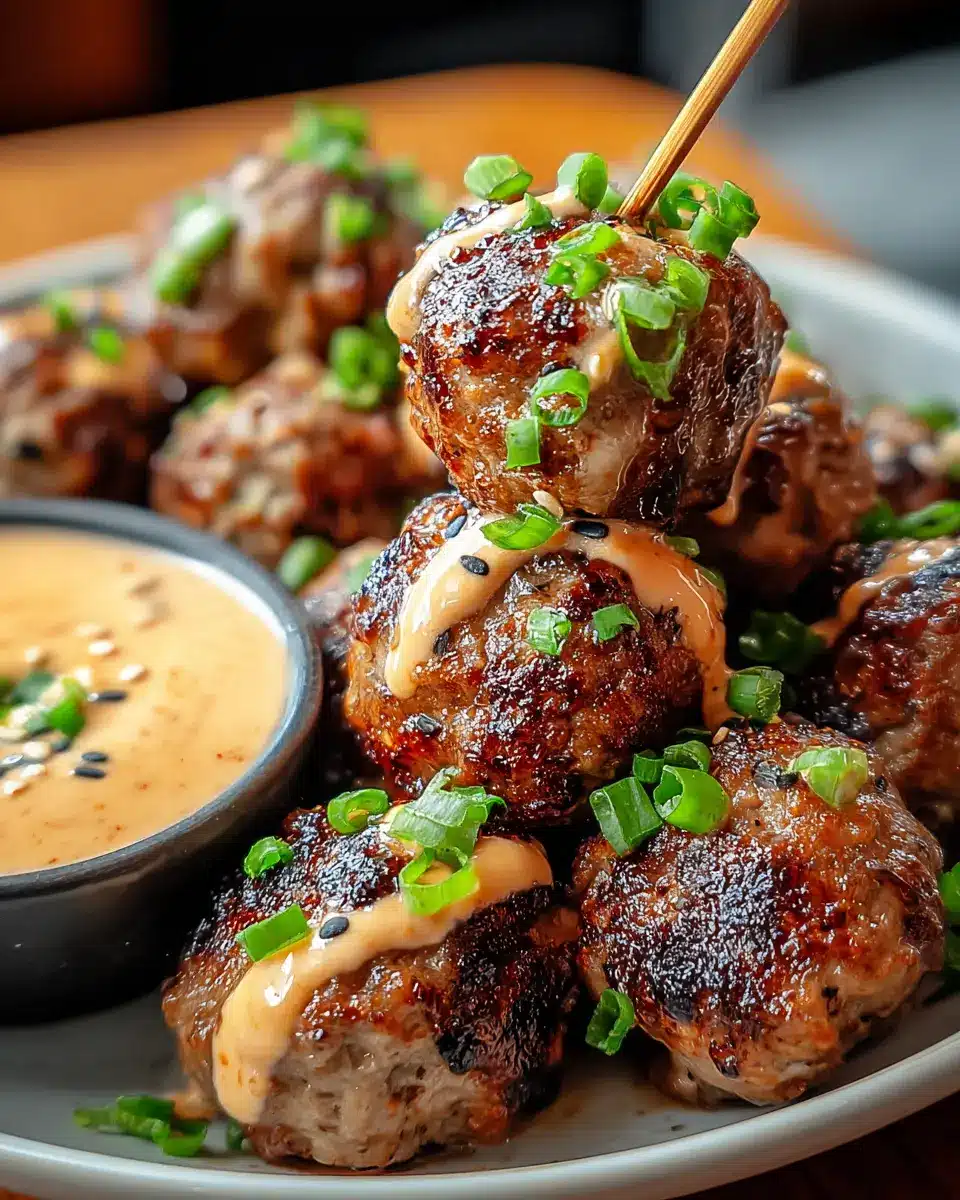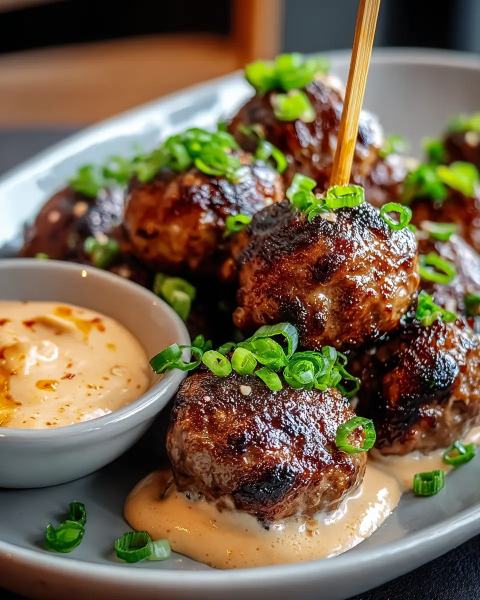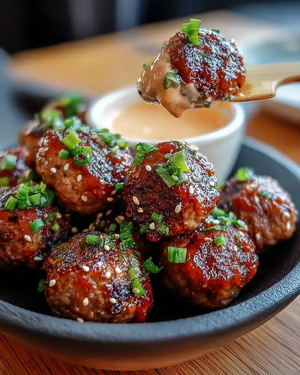 Korean BBQ Meatballs with Spicy Mayo Dip