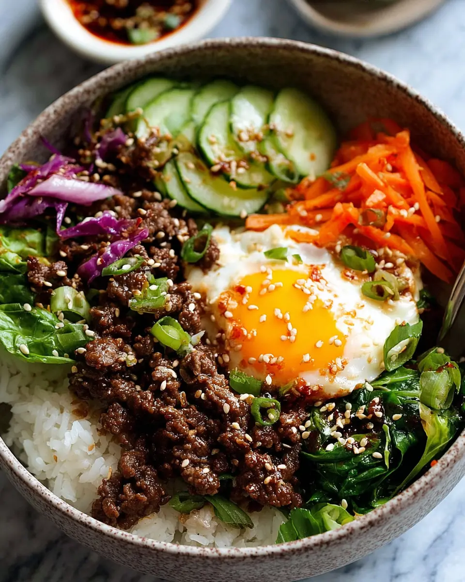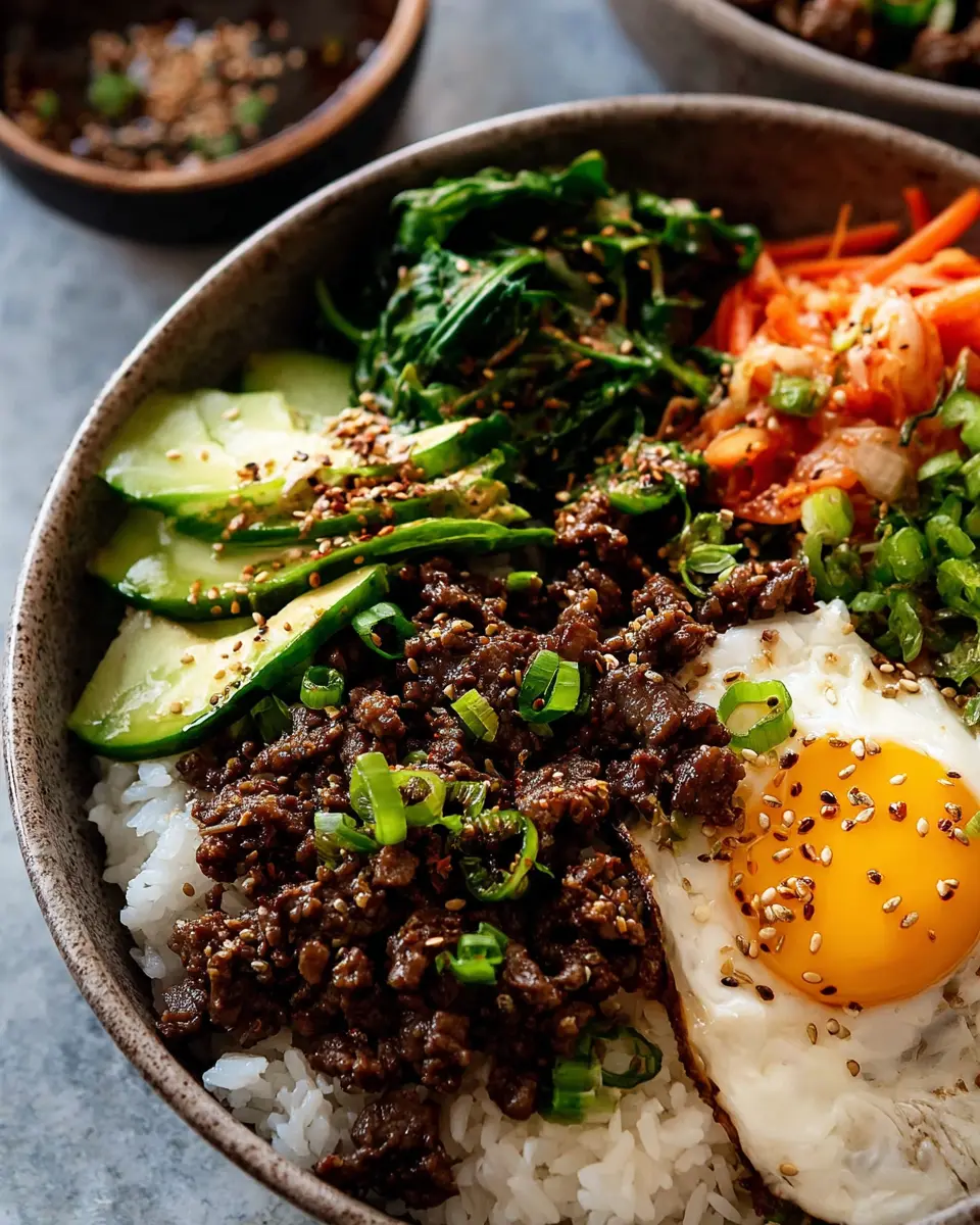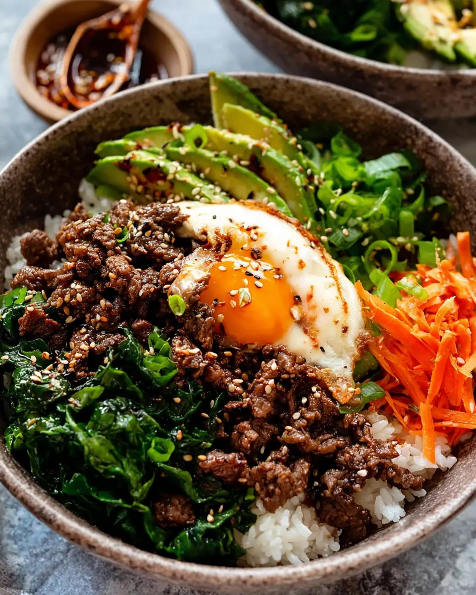 In this dish, ground beef is infused with an irresistible blend of soy sauce, garlic, and apple, creating a succulent filling that pairs beautifully with rice. The diversity of toppings allows for customization, whether you prefer fresh spinach, crunchy carrots, or creamy avocado.