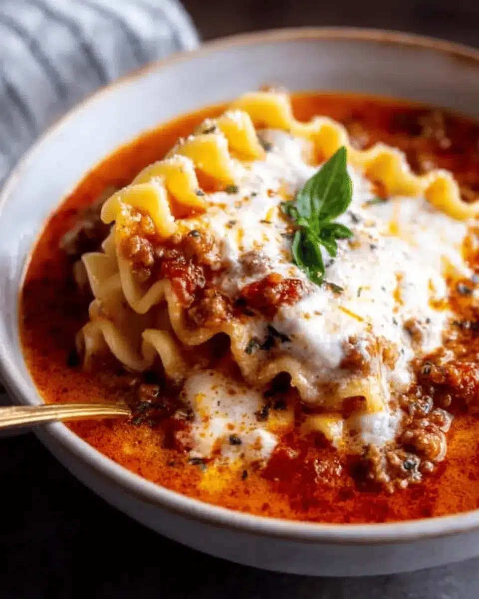To round out your meal, serve the lasagna soup with a side of crusty garlic bread or a crisp Caesar salad. The warmth of the soup complements the crunch of the salad perfectly! Alternatively, a light arugula salad dressed in lemon vinaigrette offers a refreshing contrast that balances the rich flavors of the soup. Looking for something a bit different? You might enjoy pairing it with homemade focaccia or cheesy breadsticks for a comforting, hearty experience.