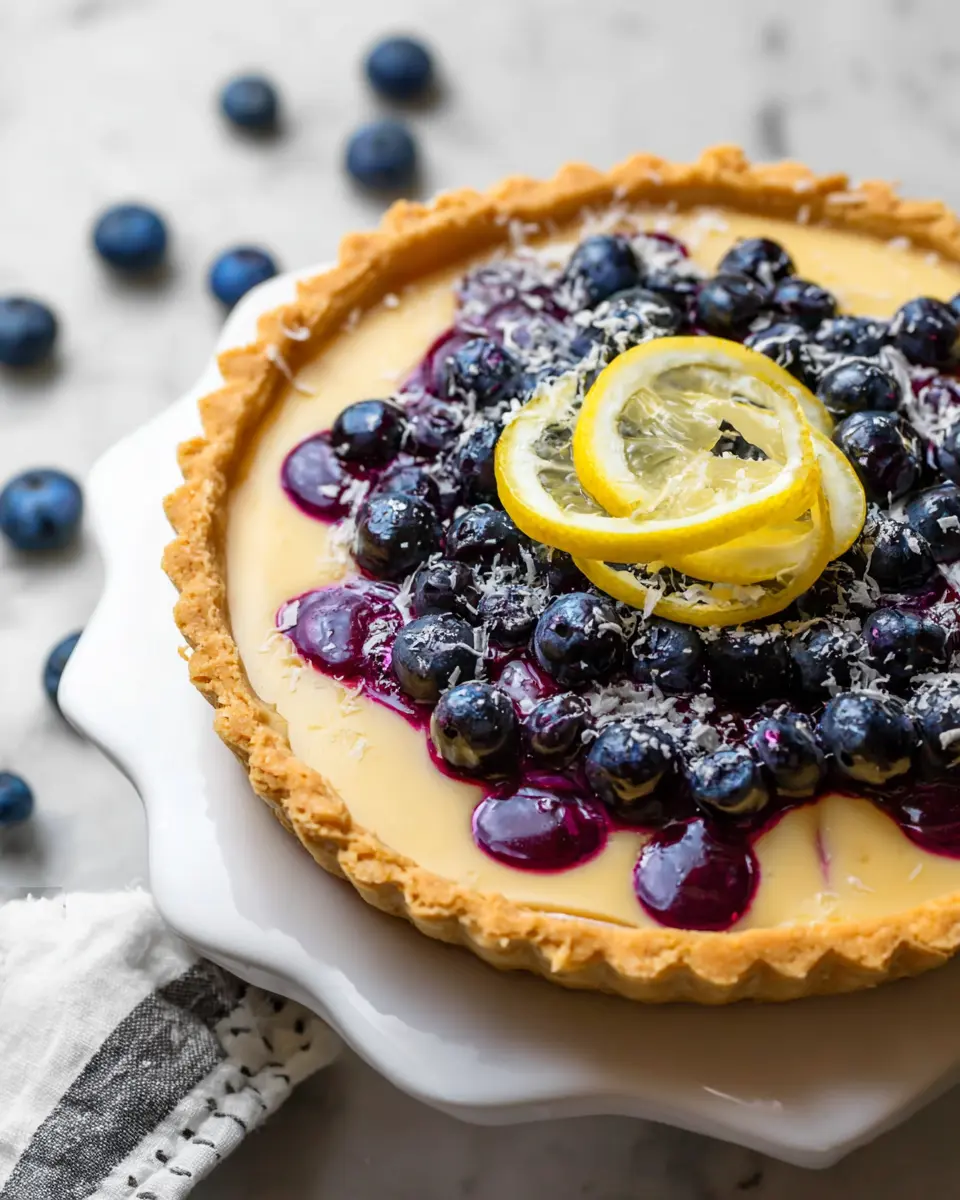 For a tropical twist on the classic lemon blueberry tart, consider adding coconut! Substitute half of the sweetened condensed milk in the filling with coconut cream, and sprinkle toasted coconut flakes on top before serving. This variation is a fantastic way to transport yourself to paradise while enjoying a slice of this delicious tart. The coconut flavor pairs wonderfully with lemon, evoking a summery vibe any time of the year!