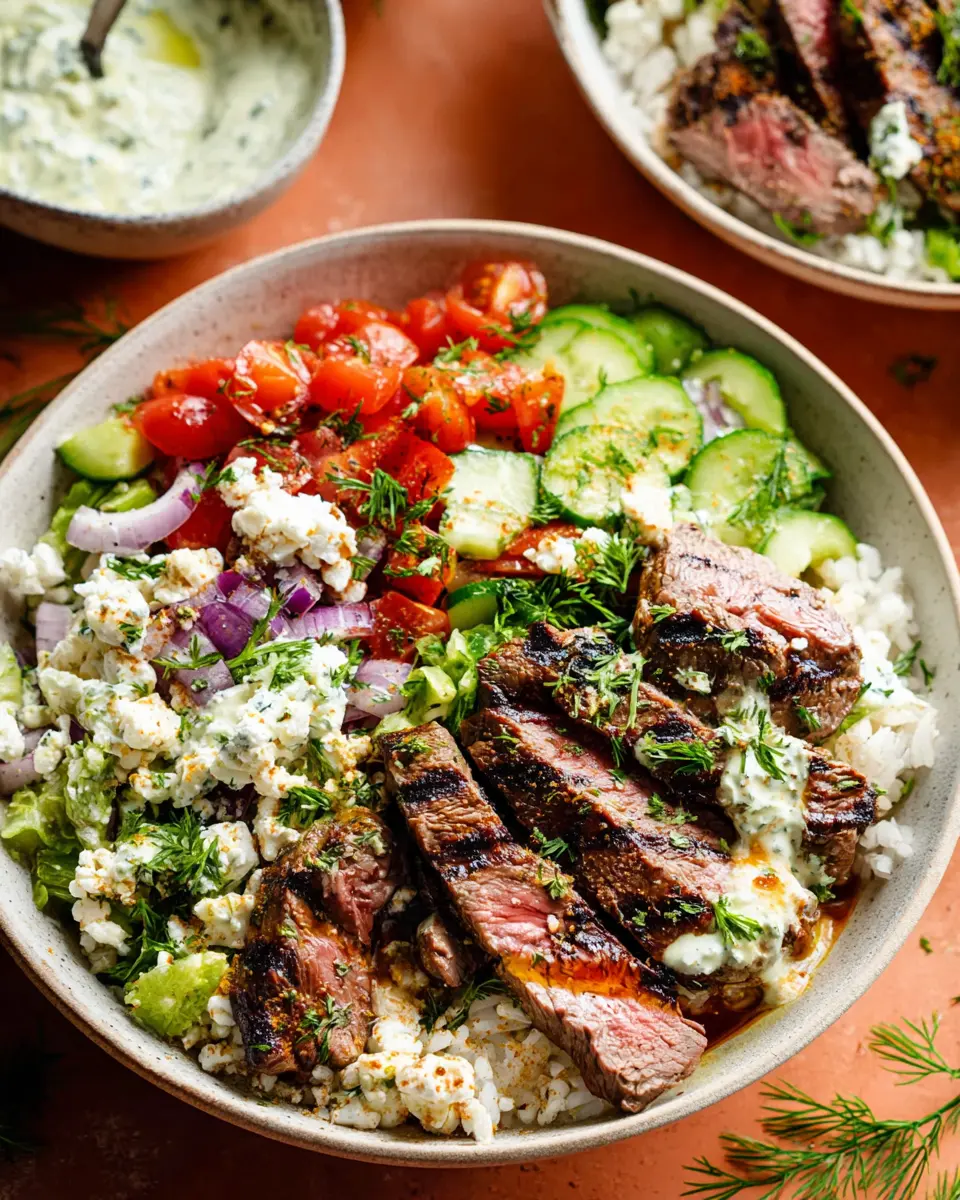 Creating Mediterranean Steak and Rice Bowls is not just a meal; it’s an experience bursting with vibrant flavors and textures. Here’s how to make this delightful dish step-by-step.
