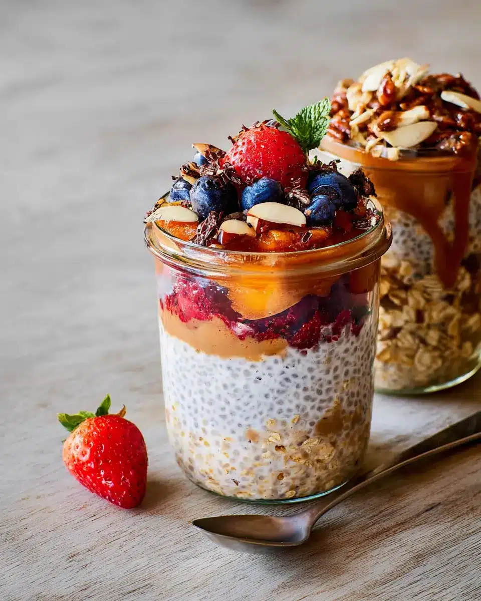 Transform your overnight oats recipe into an eye-catching breakfast centerpiece! Try layering your oats in a glass jar with fresh fruits and toppings like granola, nuts, or berries. Use vibrant ingredients like bright red strawberries or golden peaches to create a beautiful presentation. Add a touch of honey or a sprinkle of cinnamon on top for added flavor and flair. Your breakfast might just become Instagram-worthy!