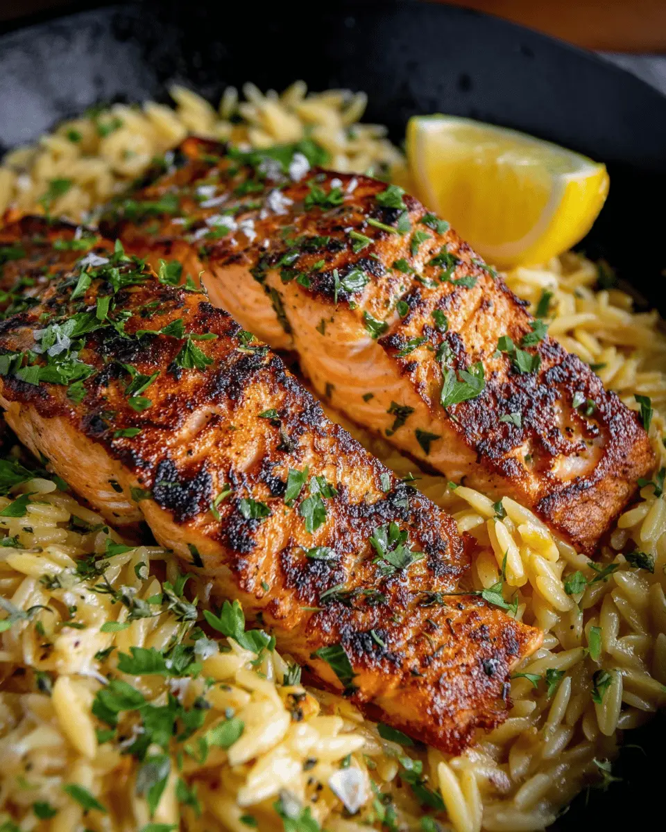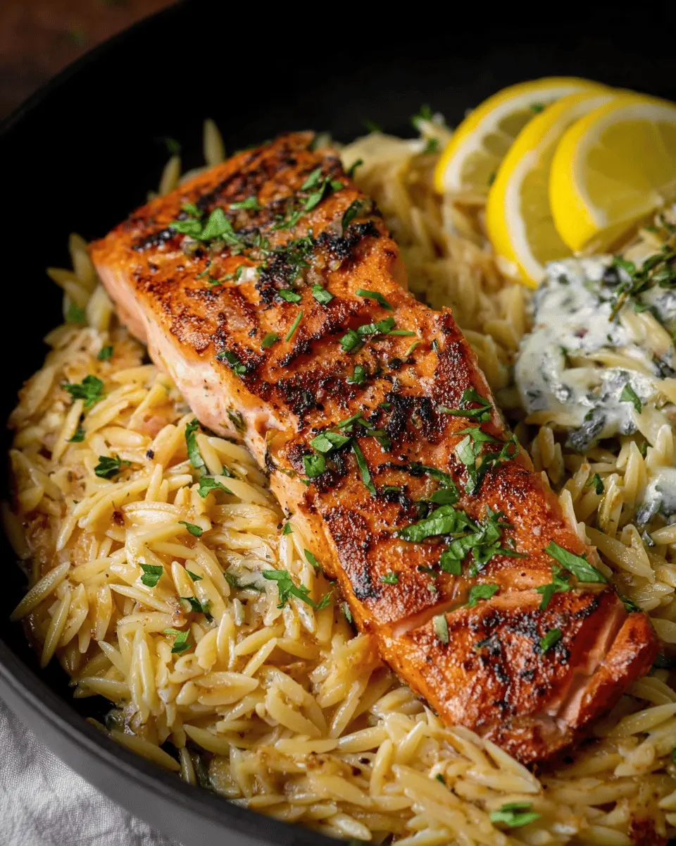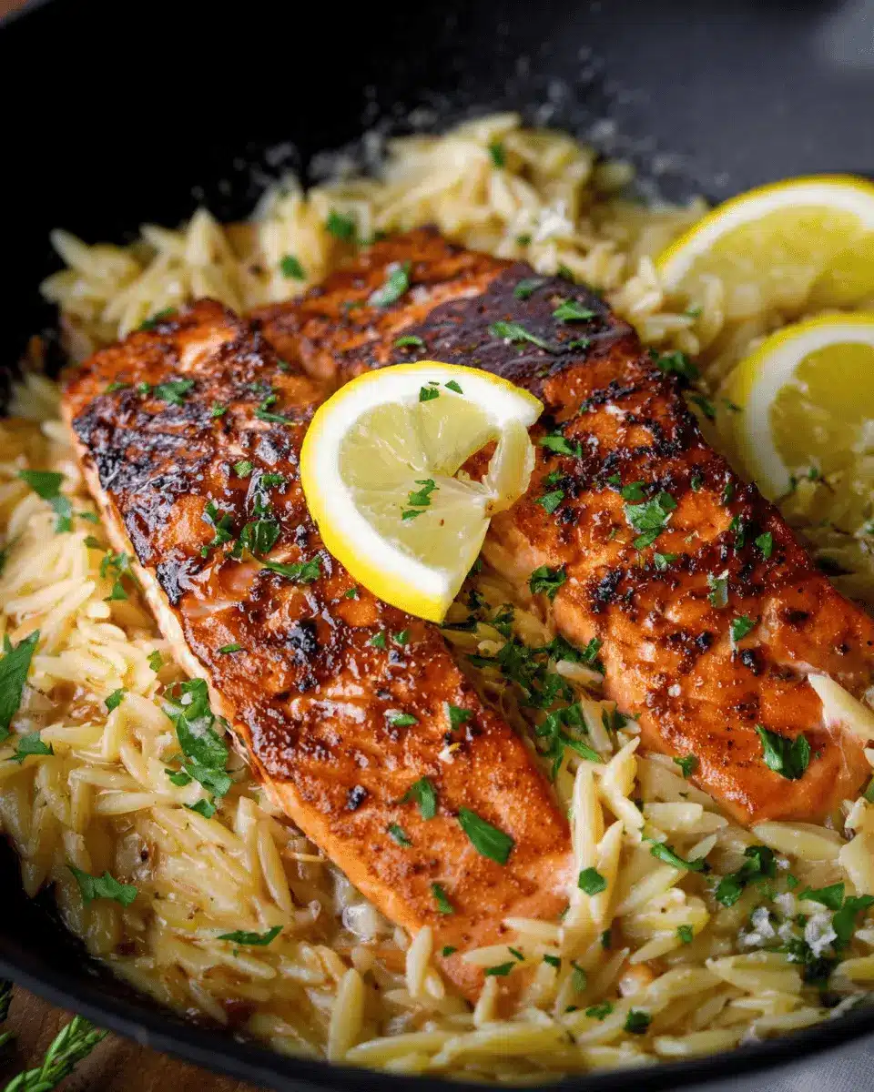 Pan-Fried Salmon with Creamy Lemon Orzo