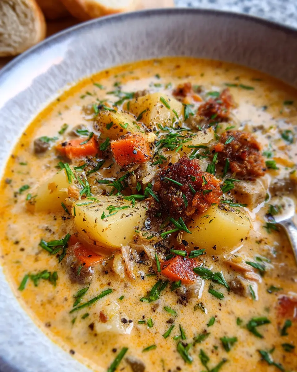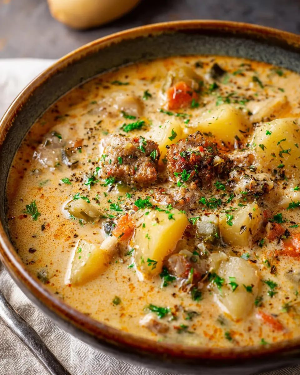 To elevate your dish, consider garnishing your chowder with a sprinkle of freshly chopped parsley or chives. Adding a drizzle of cream or a few slices of crispy turkey bacon not only enhances the flavor but also makes your presentation pop. Don’t forget to snap a photo before diving in—this Potato and Sausage Chowder deserves its moment on your feed!