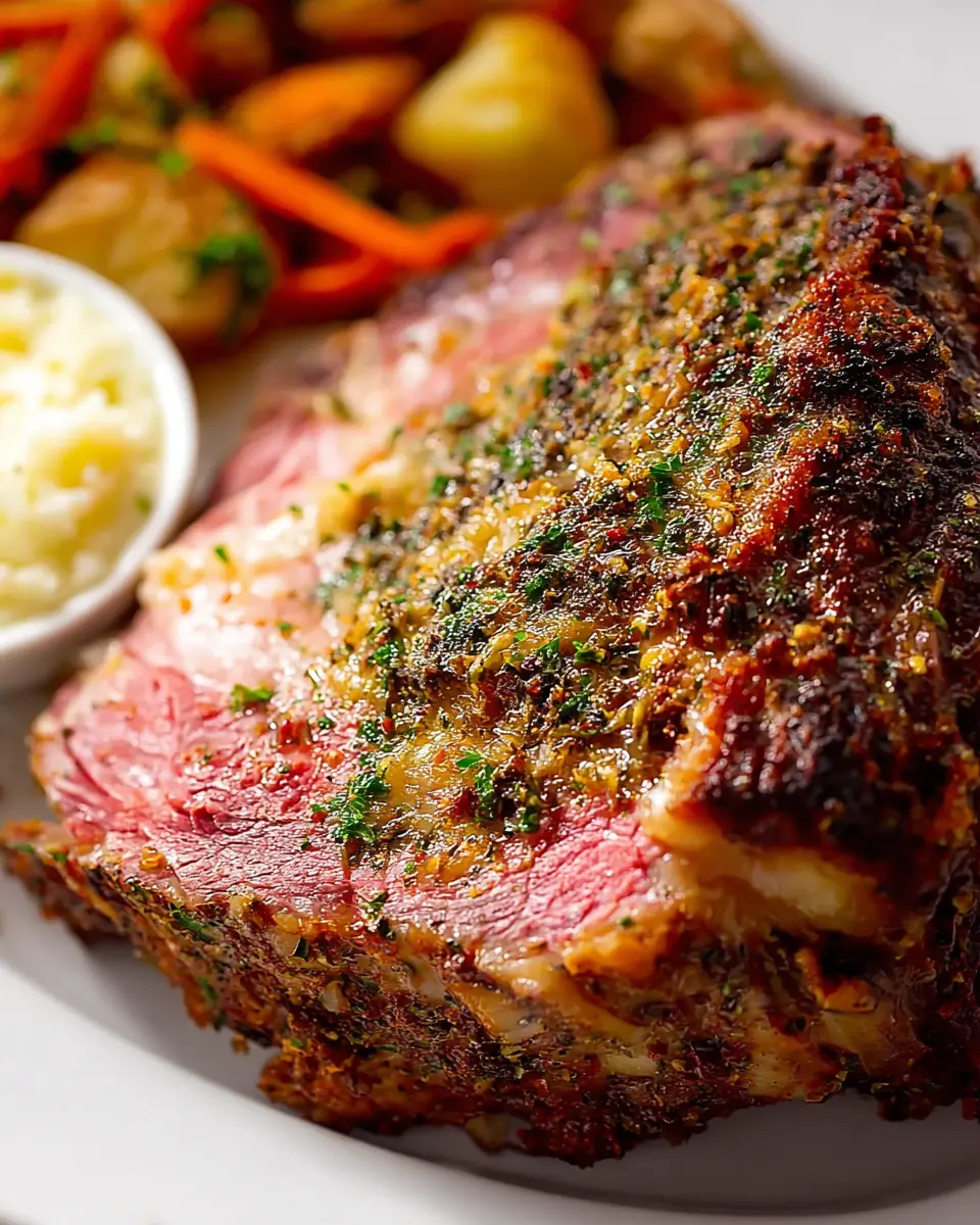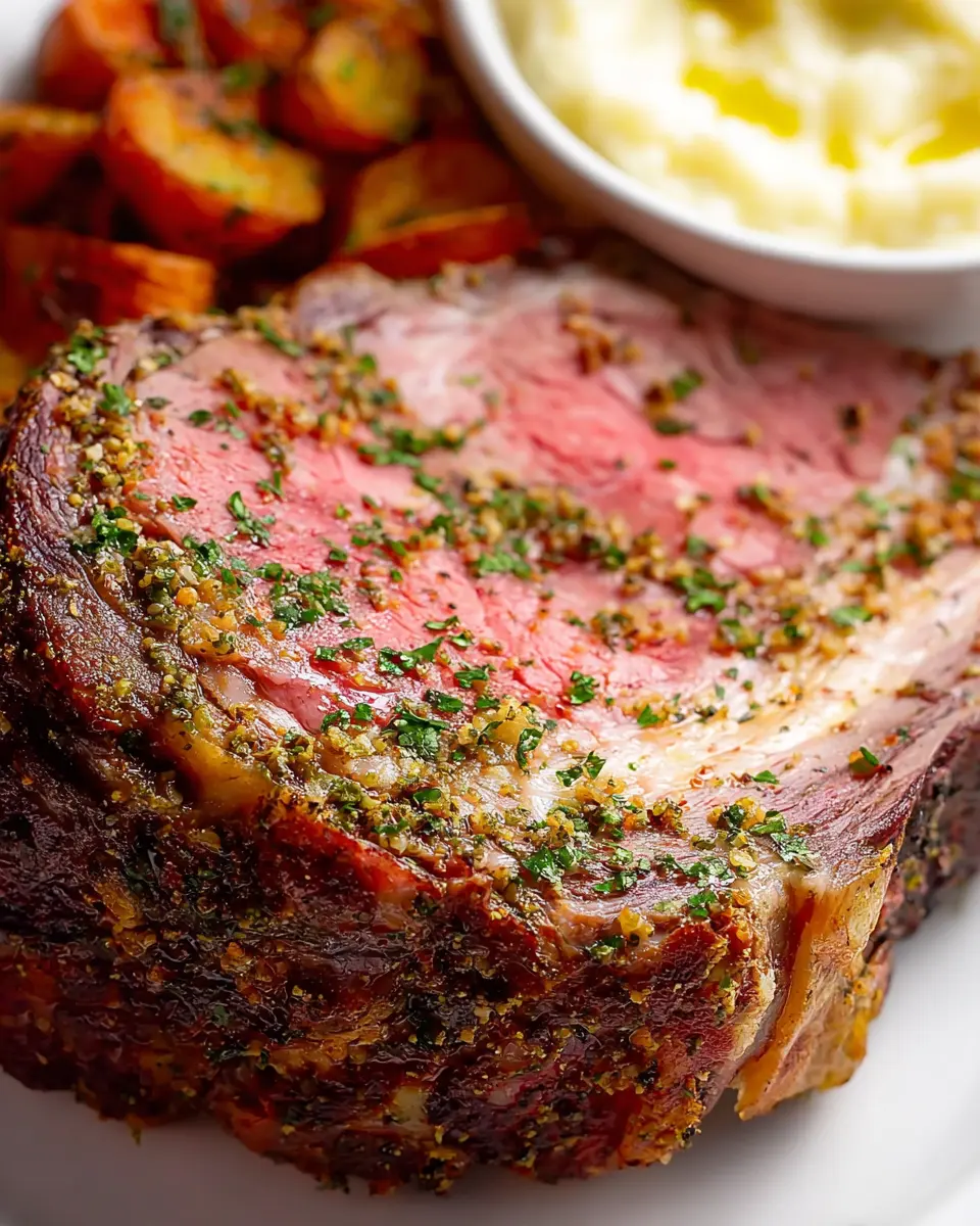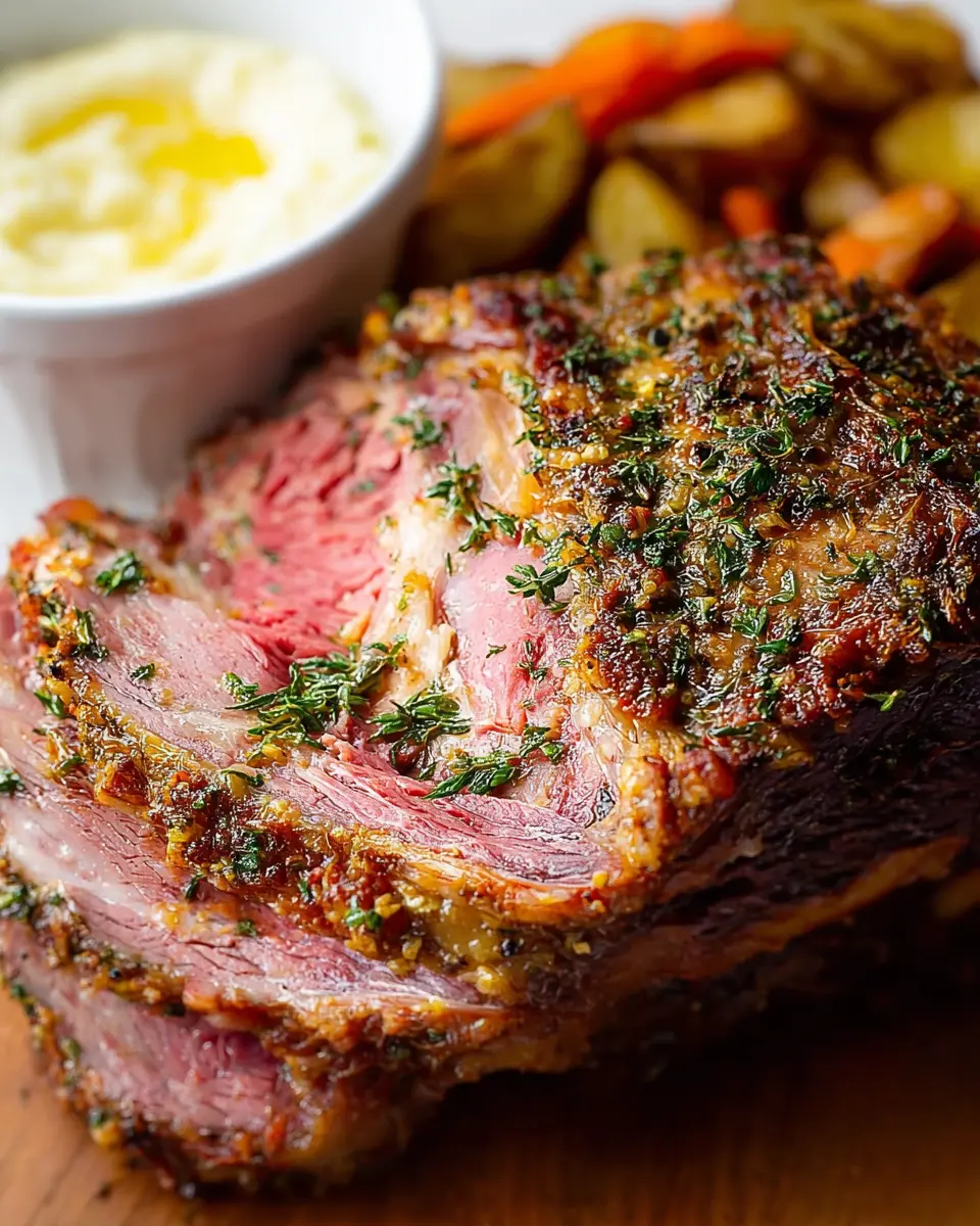 For a fresh twist, try an herb-crusted prime rib. By mixing your favorite herbs—like rosemary, thyme, and parsley—with garlic and olive oil, you’ll create a fragrant crust that beautifully contrasts the rich beef. This approach not only enhances the roast’s flavor but also makes for an appealing presentation that’s perfect for any gathering.