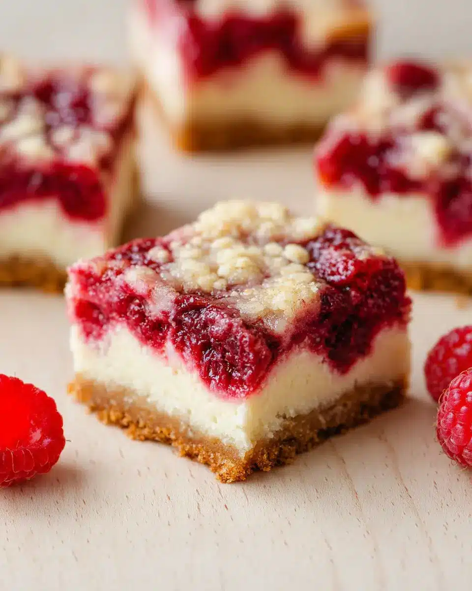 Imagine a buttery crust cradling a rich cheesecake filling, topped with luscious raspberry goodness—sounds tempting, right? These bars not only satisfy your sweet tooth but are also surprisingly easy to make. The balance of tart raspberries with the creamy cheesecake layer creates a flavor explosion that dances on your palate. Plus, they’re super versatile! Whether it’s a summer gathering or a cozy winter night, raspberry cheesecake bars fit perfectly into any occasion.