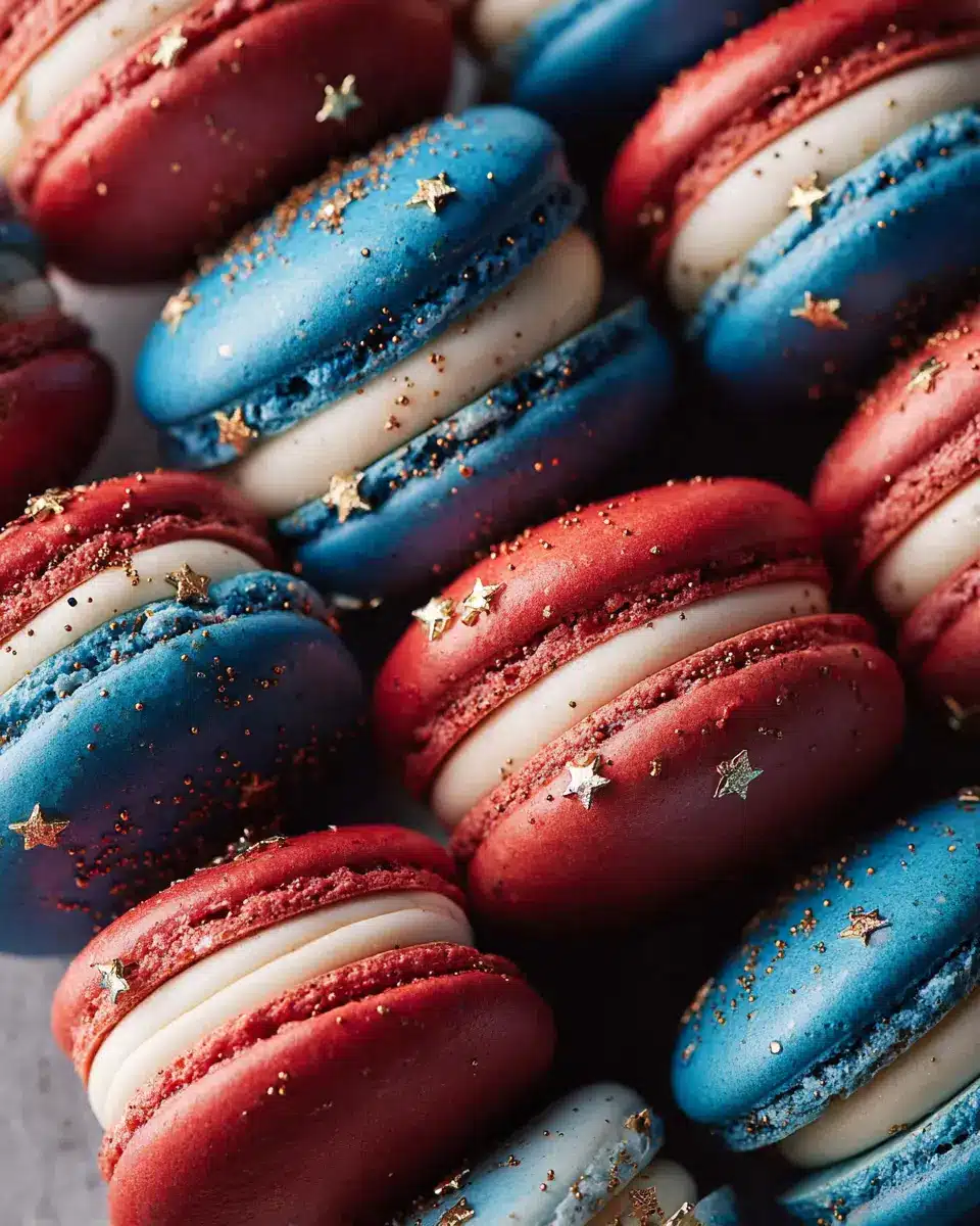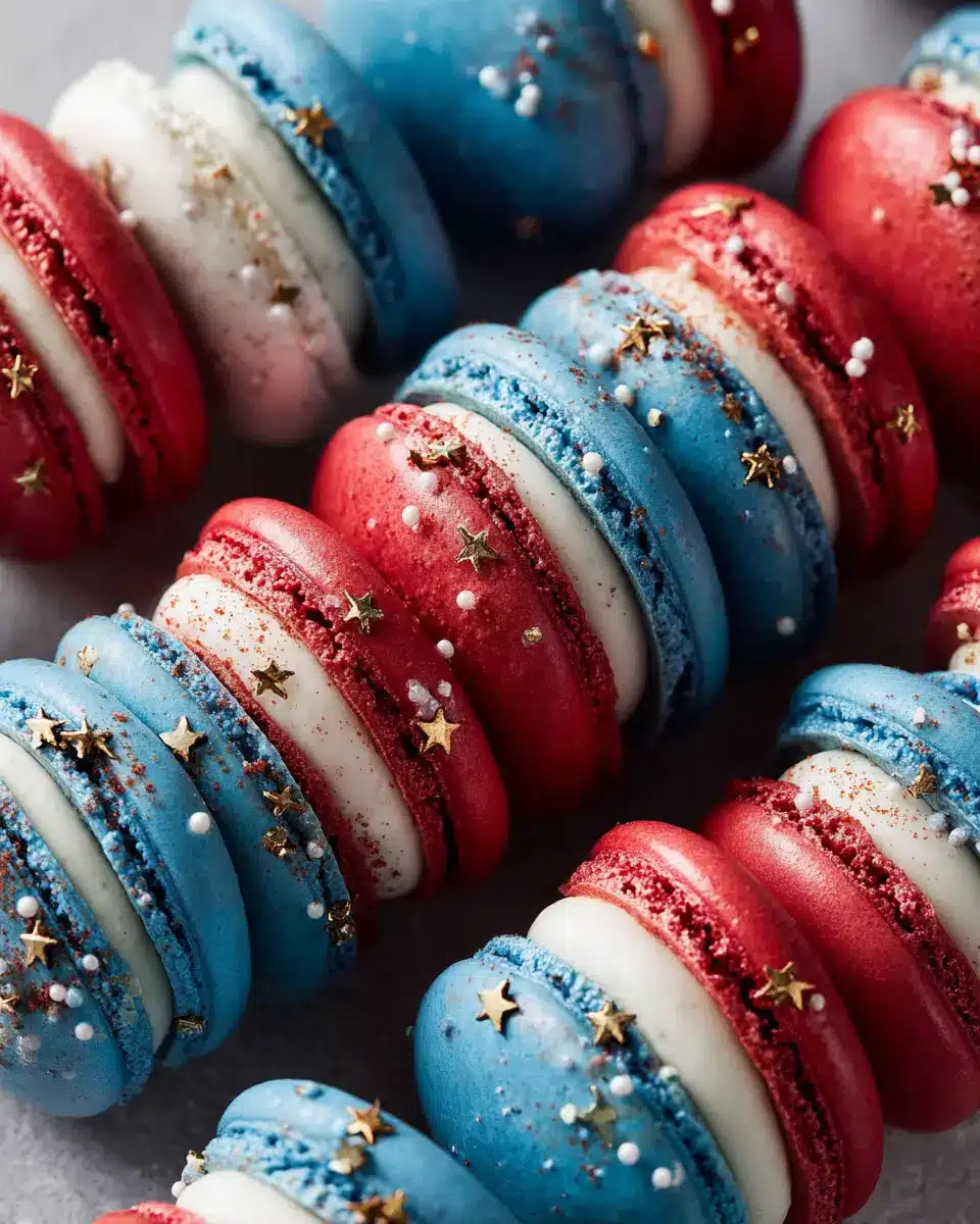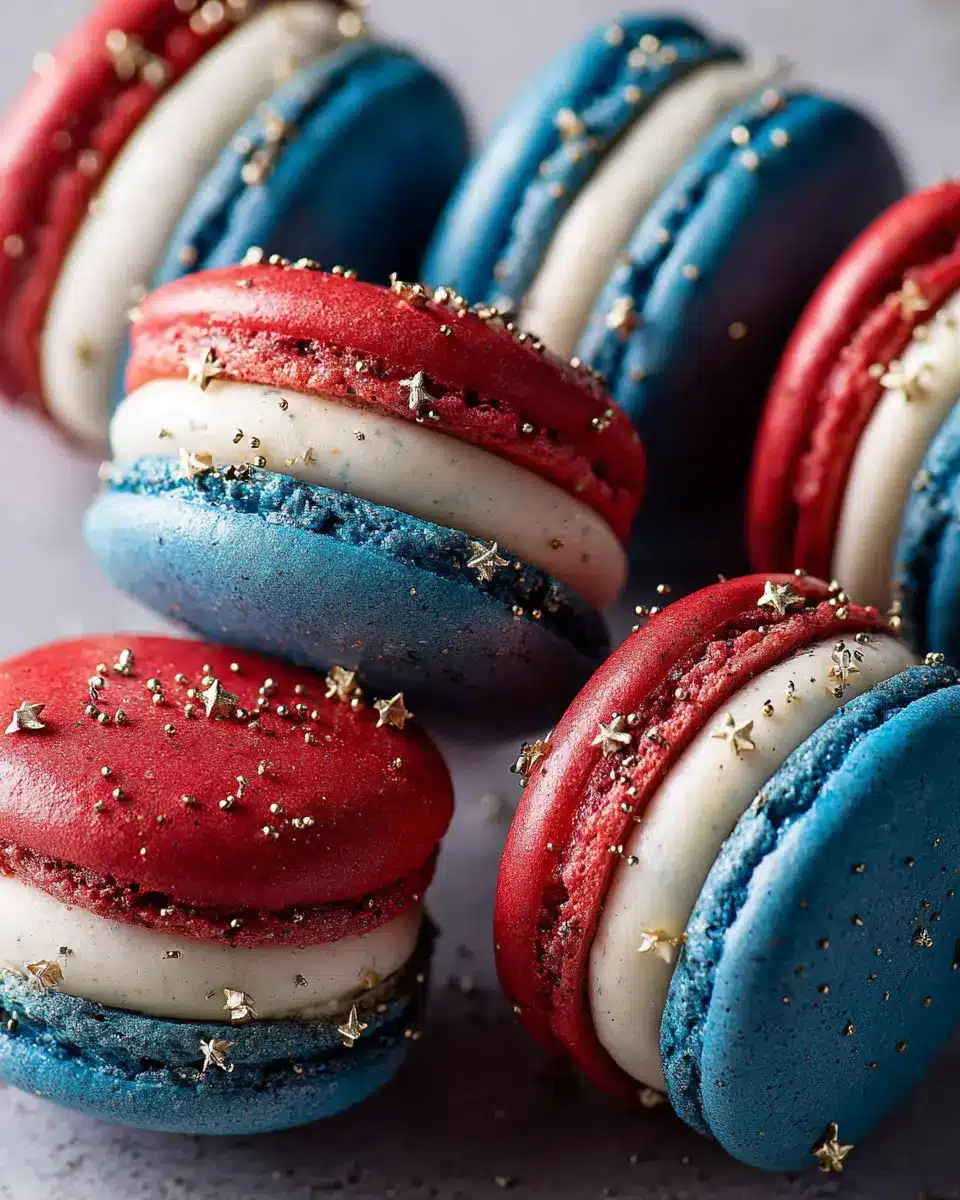 Festive Platter: Arrange the macarons on a vibrant tray, mixing the colors for a visually stunning display. Add some fresh raspberries or blueberries around them to enhance the red, white, and blue theme.