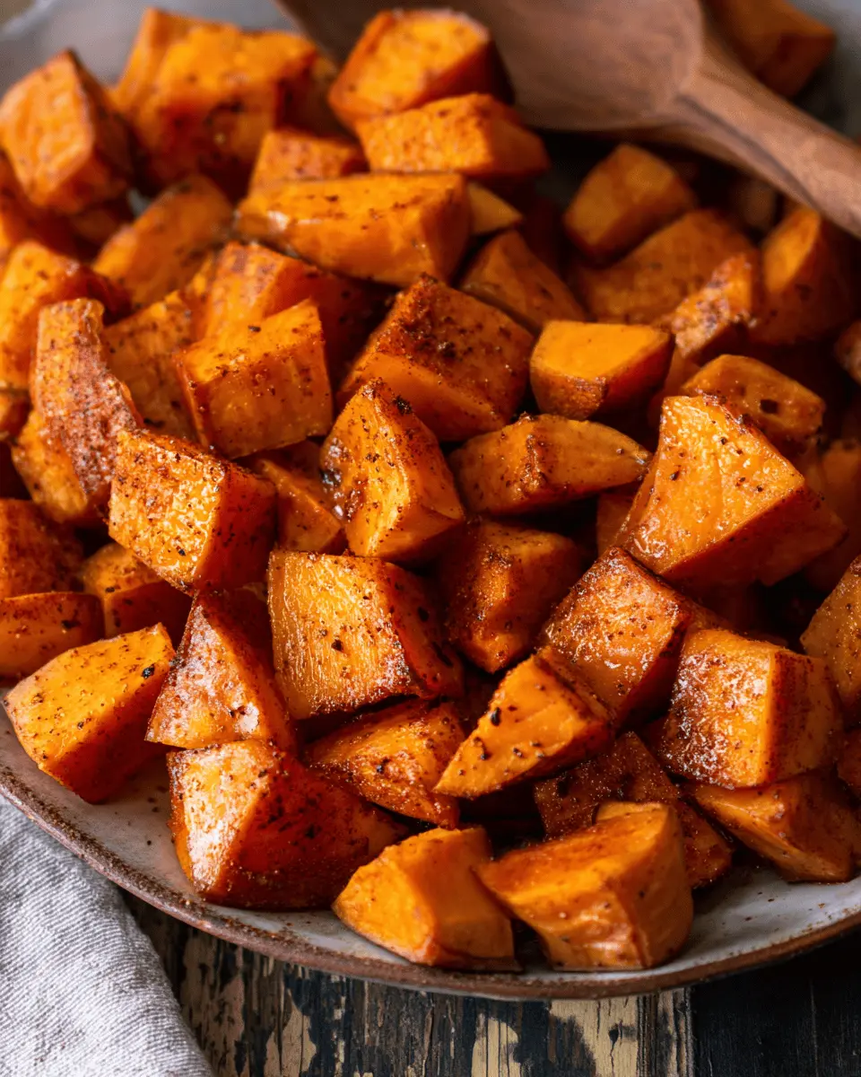 You’ll know your roasted sweet potatoes are done when they’re beautifully golden brown and tender when pierced with a fork. Typically, this takes about 25 to 30 minutes at 375°F. For extra crispiness, give them a little toss halfway through roasting—this helps them cook evenly and achieve that perfect caramelization.