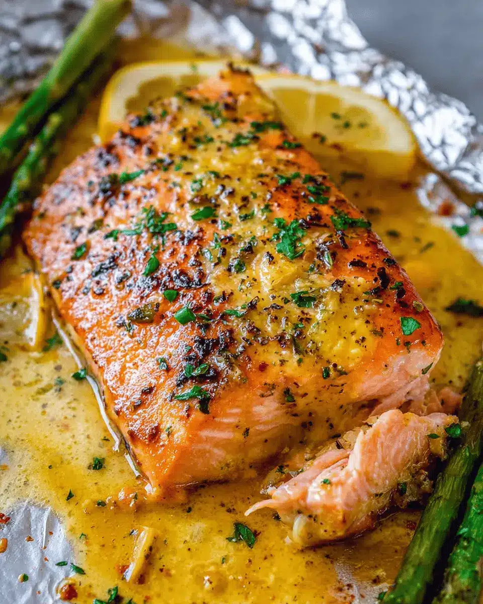 Next up, preheat your oven to 375°F. This allows your Sheet Pan Lemon Garlic Butter Salmon to bake evenly. While that’s heating up, grab a large sheet of aluminum foil. Place it on your sheet pan with the longer side parallel to the pan. The foil is crucial here—it will keep that beautiful buttery mixture contained, ensuring each bite is rich and succulent.